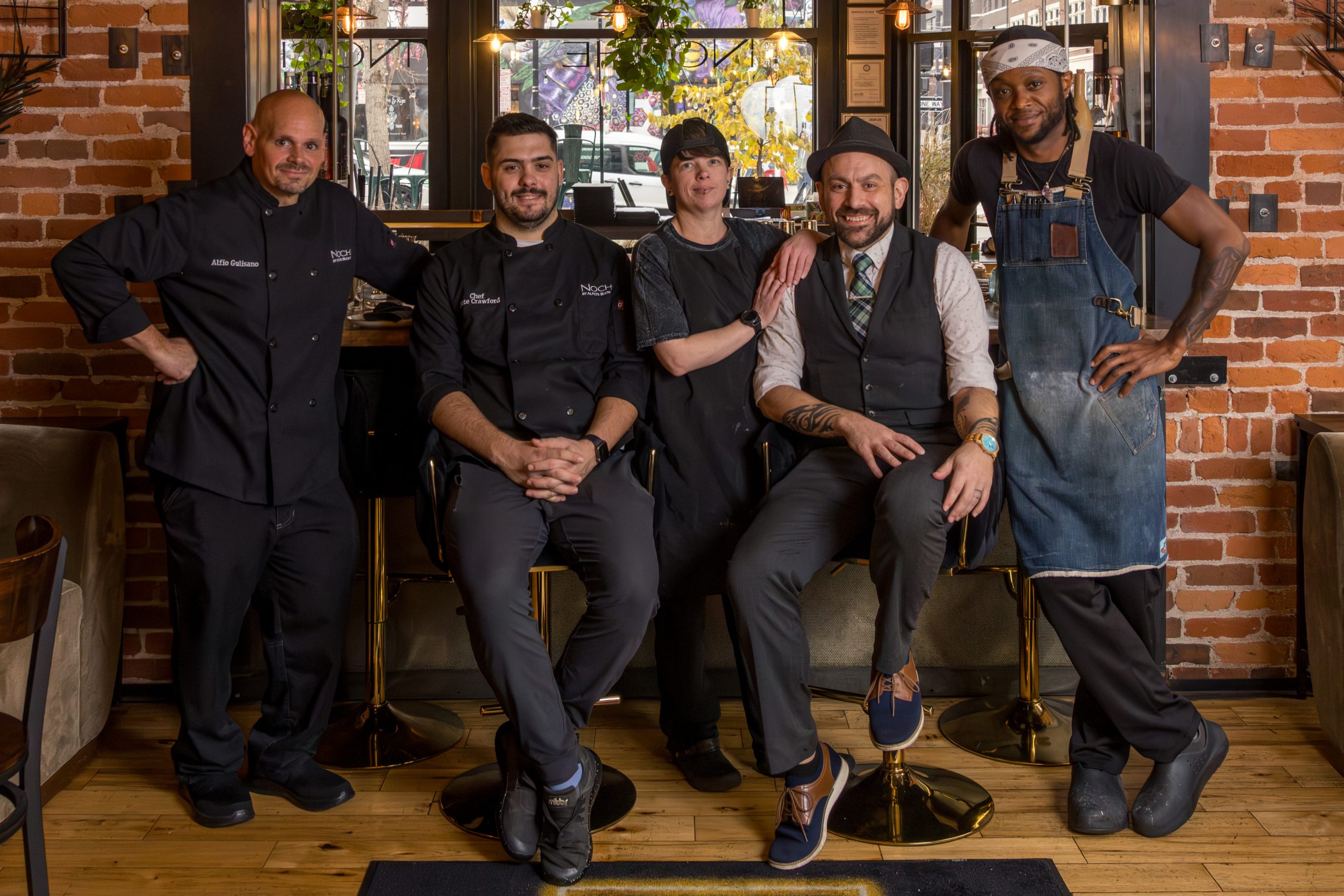 Chef/owner Alfio Gulisano (far left) and his crew—Nate Crawford, chef; Sky Cooper, chef; Scott Sargent, mixologist; and Darren Mickens, sous chef.