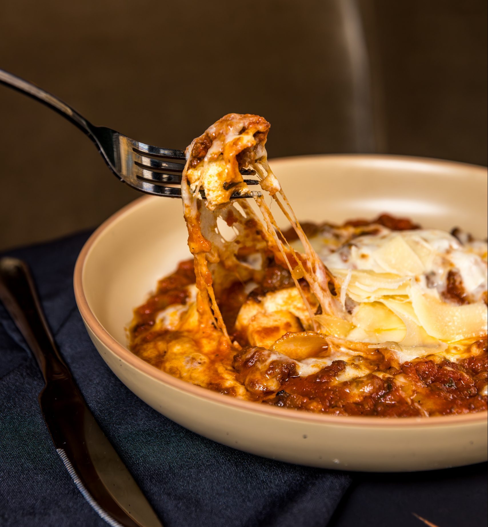 And then there’s the pan-seared lasagna, perhaps Noche’s most unique creation. Instead of baking in a casserole, the lasagna is cut into a single serving, seared on both sides to develop a golden crust, then finished in the oven. The technique gives the dish a crisp edge and smoky aroma while cutting the usual 30-minute bake time down to just 10. The layers of ricotta and smoked Bolognese offer the familiar comfort of regular lasagna, which speaks to the creativity of a chef who respects tradition but won’t be confined by it.
