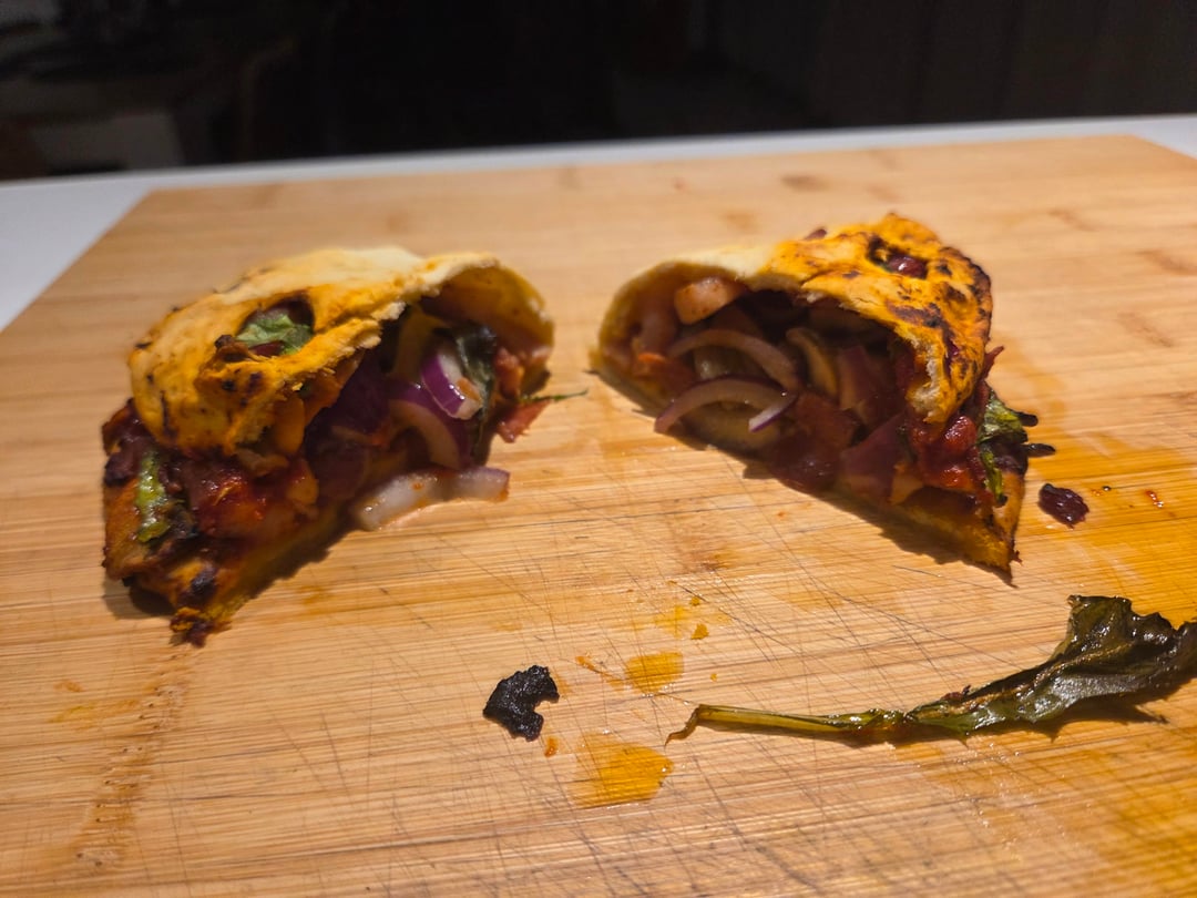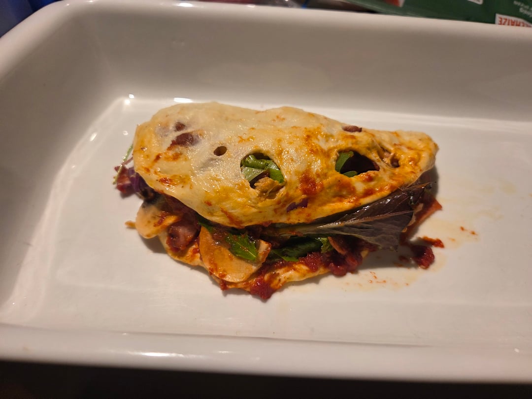 Salami and bacon with spicy pepper seasoning, basil leaves, mushrooms, tomato sauce, mozarella and gouda cheese, and pizza dough covered in olive oil.by RixMC 5 Comments friend_unfriend 7 days ago this looks amazing,, did the dough get crispy like a taco shell? nedovolnoe_sopenie 7 days ago >technically food HomeGoySixtyFoy 7 days ago This is the way. PrettyVolume9345 7 days ago Well.. there was an attempt… MatchTop5364 7 days ago I think I need that