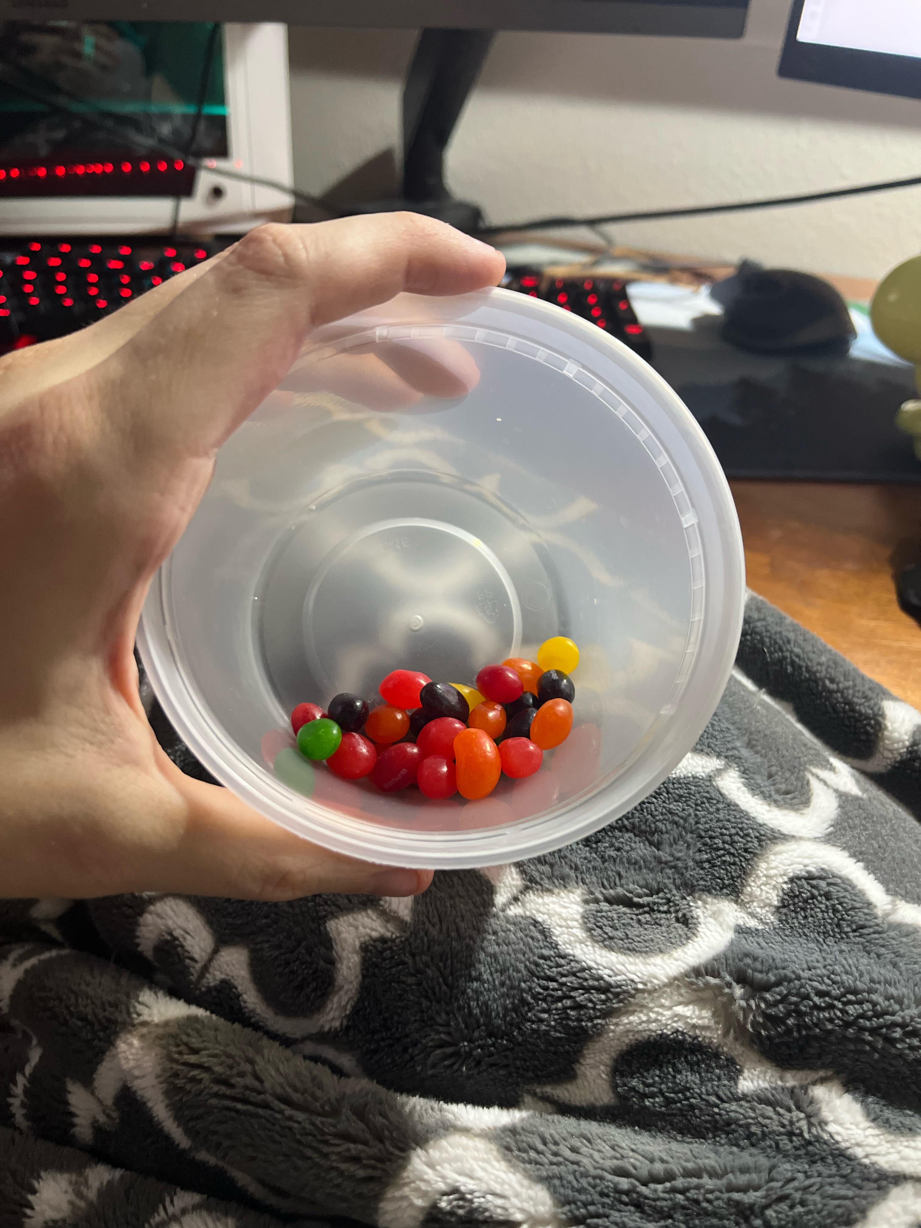 Just a recent “volume” food for me. Jelly beans! The starburst jelly beans are 100 cal / oz. (Pictured about 1.3 oz) and as long as I am limiting myself to one in my mouth at a time, it lasts quite a while.