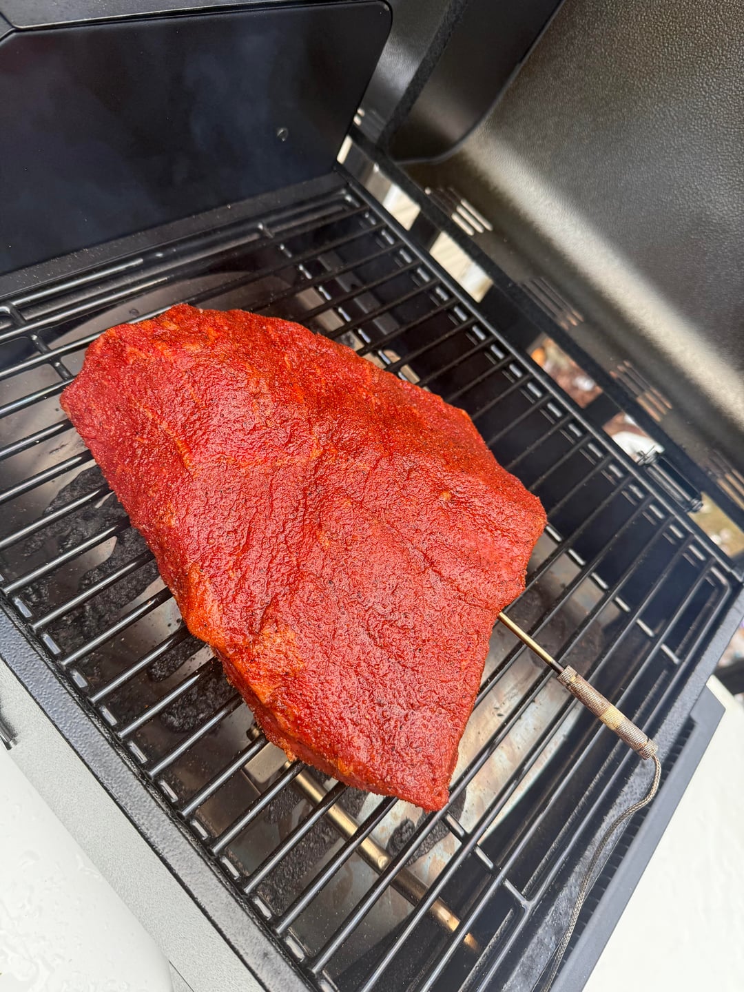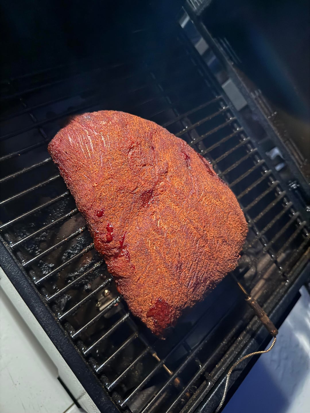 Congratulations on the buy and timing. Is that the portable model. I have a similar. Nice cut to smoke a Pichana. What are the details on pellets, rub, temp and cook time. Any after pics?
