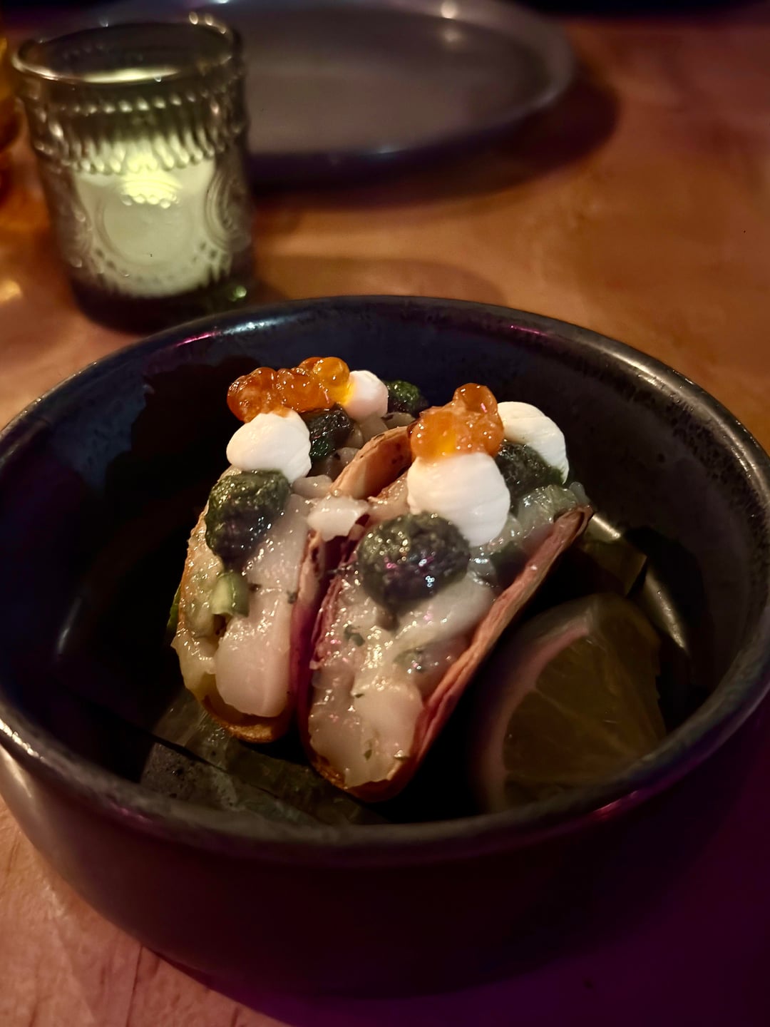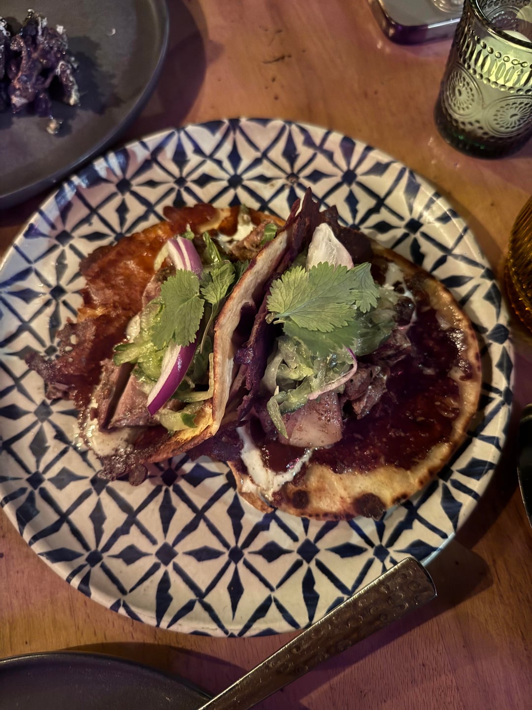 We ordered the vegetable biryani, crispy tacos with scallops, roti quesadillas, and tacos arabe. The biryani was fragrant and comforting with great texture. The crispy scallop tacos were the surprise favorite, with a perfect balance of richness and brightness. The roti quesadillas were indulgent and fun, and the tacos arabe had deep, slow built flavor that made them feel special.