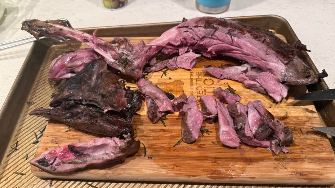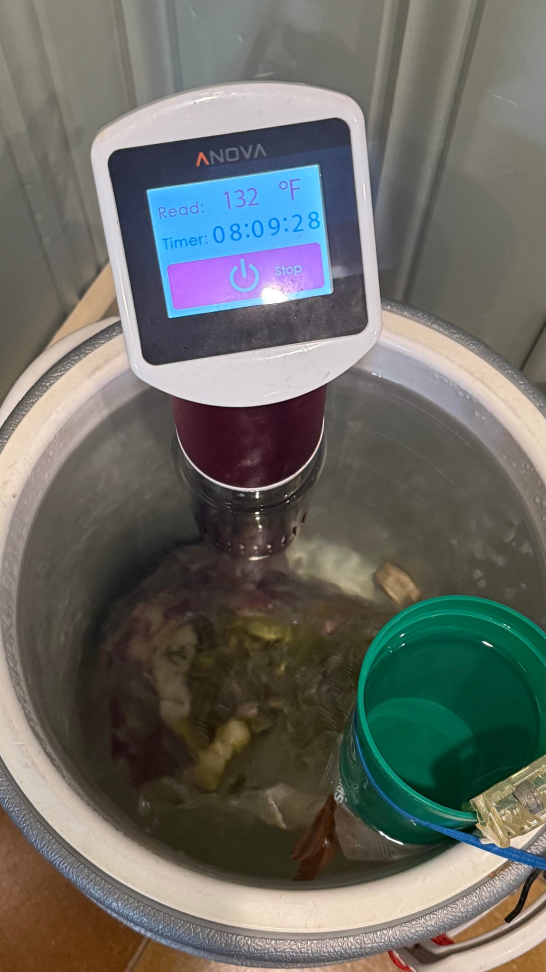 First time cooking venison. (First deer I harvested as well! I dressed it and butchered it too.) The cup in the bath was to keep the leg submerged.