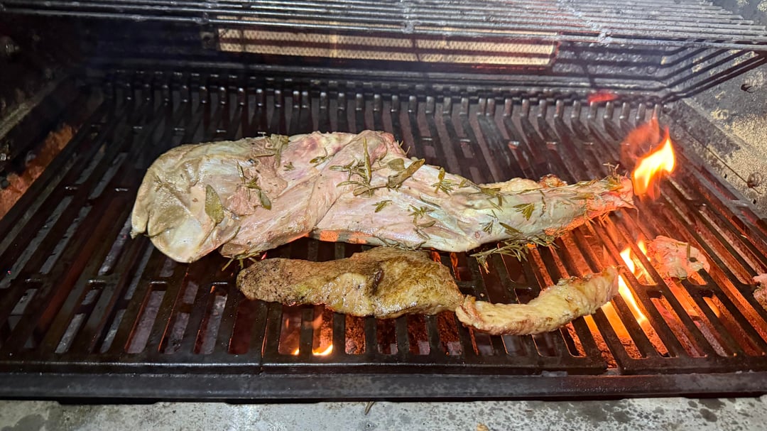 I vacuum sealed it with butter, fresh rosemary, fresh, sage, and some chunks of raw beef fat that I trimmed from the steak.