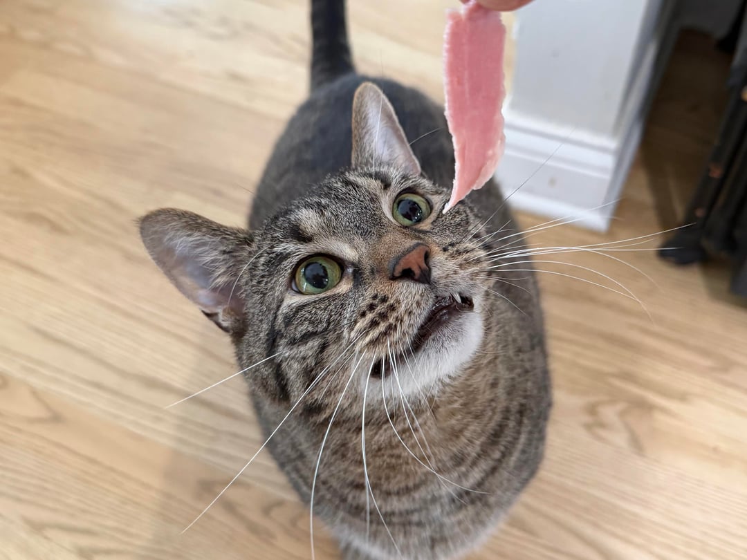 Hope that thin piece of ham wasn’t too salty for kitty.