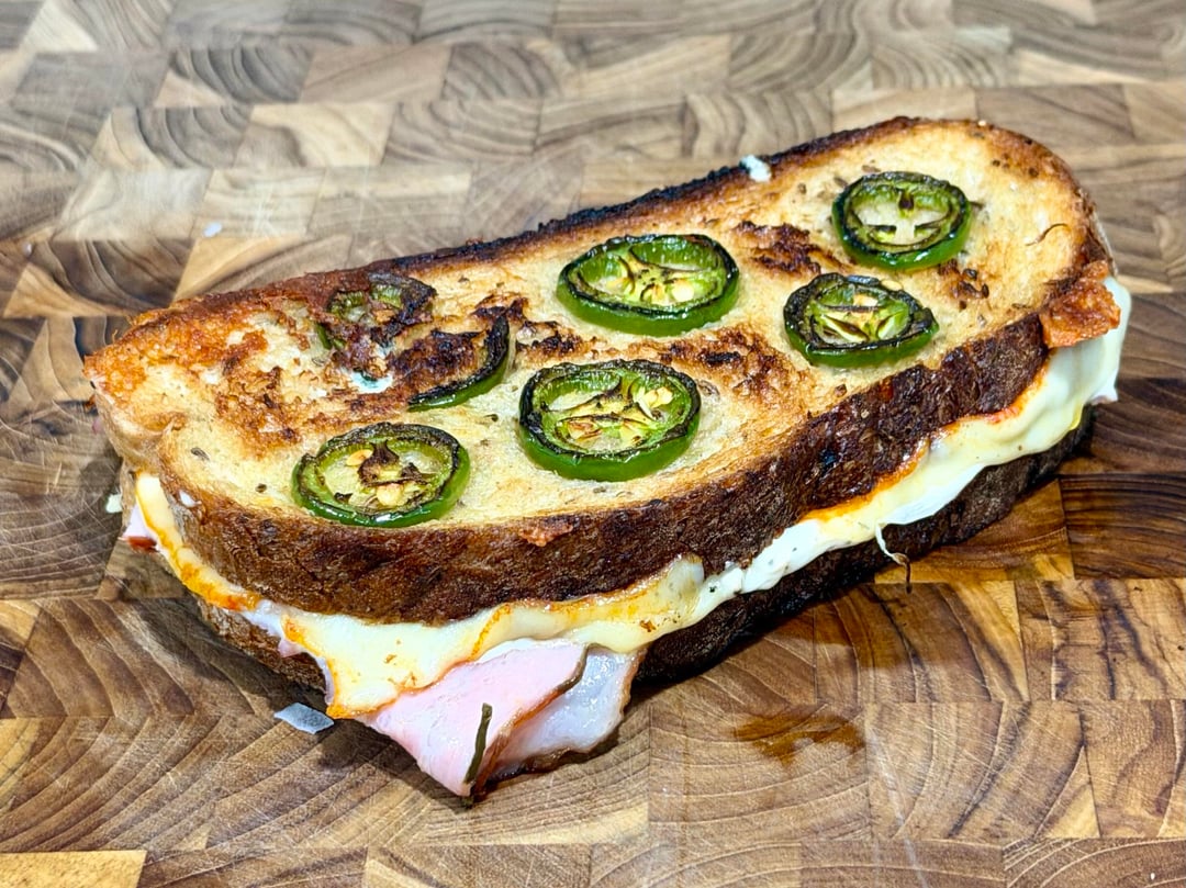 I made a grilled ham and cheese this morning, I can’t believe I’ve never put jalapenos on top!!