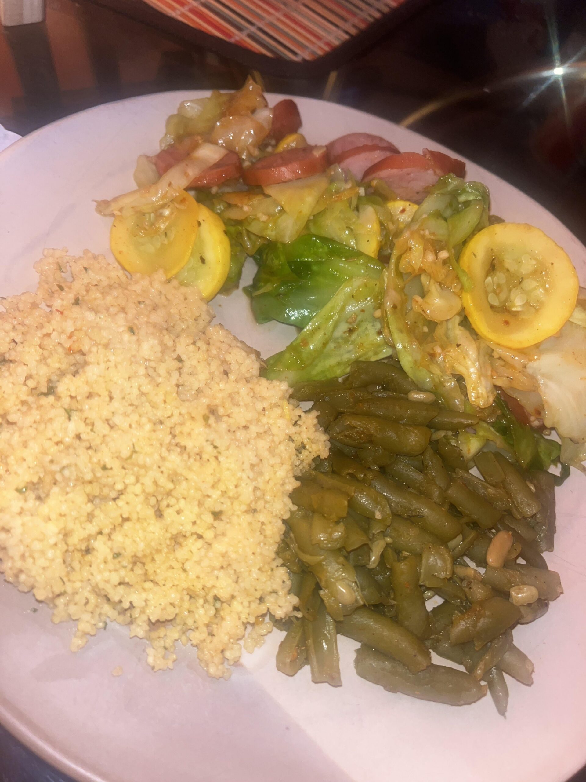 at the same time, toss your squash and sausage into a pot or pan with butter and let that cook. by the time your cabbage is done, this should almost be as well. toss em together when it feels right!