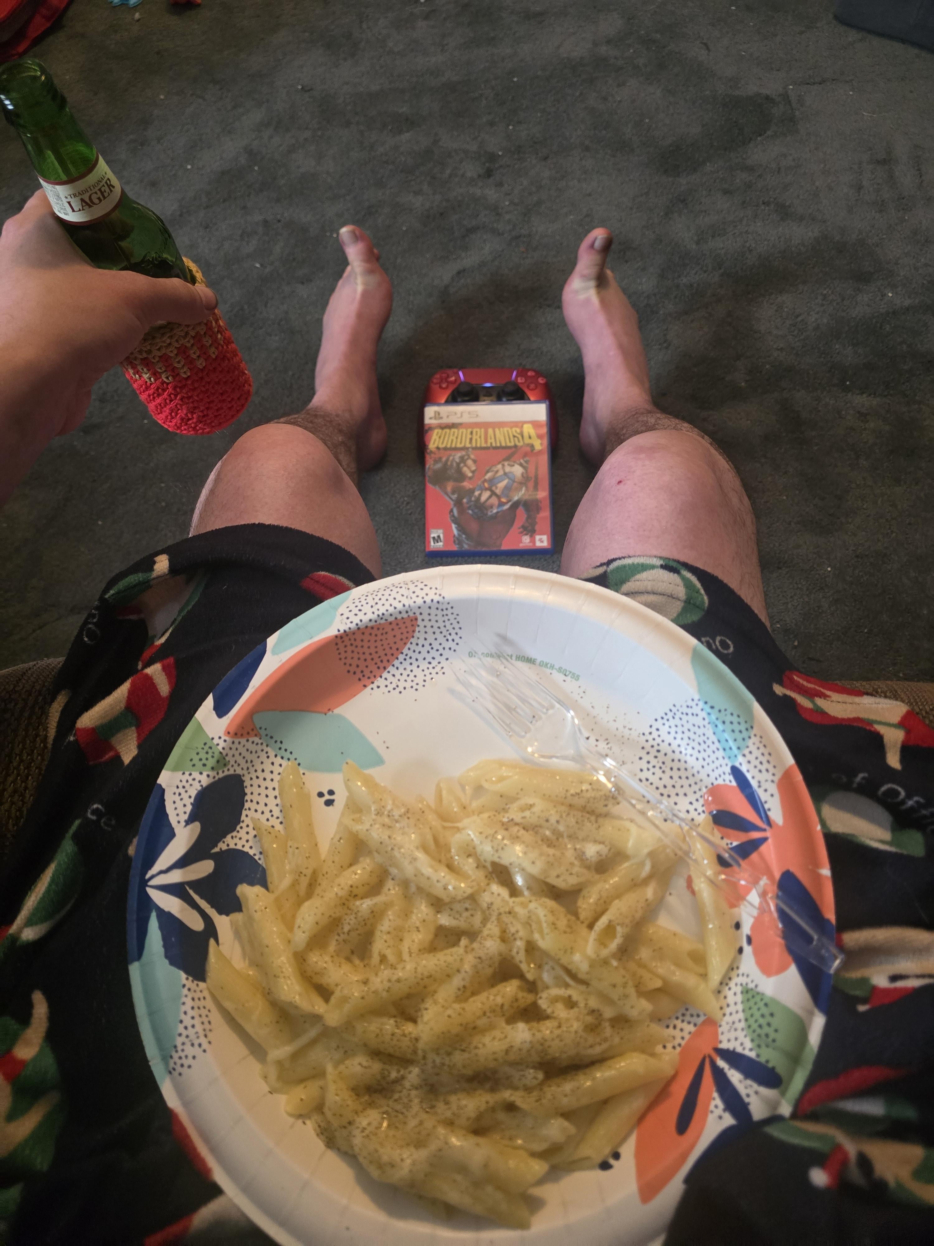 Day drinking my Yuengling with my signature Butter Noodles and Cheese playing Borderlands, life is Good y’all 🙂by StolenCoupe 11 Comments Willing_mass_902 6 days ago Nothing beat those buttered noodles The00Taco 6 days ago Hell yeah man. What’s your thoughts on 4? I never really saw anyone talk about it after it came out PickaDillDot 6 days ago I love eating pasta prepared that way too. It’s soooo damn good, and simple to do. ALostParadise 6 days ago How’s borderlands 4? I liked 3 a lot. Gibbly_Gorkoroo 6 days ago Op is actually staring at a wall mimicking claptrap and shooting finger guns. BurnedOutTriton 6 days ago Cheers bud! Living the dream 😁 hraycroft95 6 days ago one my go to easy meals when im feeling lazy skip_over 6 days ago How’d you lose your toes? Sad_Net1581 6 days ago Lovely fucking day. Idk about them crust busters tho. Throw football in there and you good ApprehensiveLlama69 6 days ago This is all I want out of life tbh VermicelliMany1133 6 days ago Yup my 5 years olds favorite!
