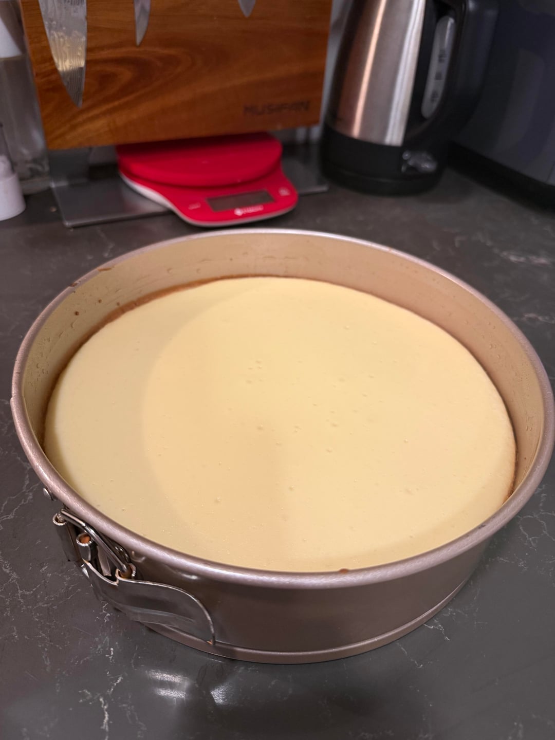 Filling 24 ounces of cream cheese (3x 8 oz packages) Fluff up in mixer Add 200 grams of sugar while mixer on low, 1/4 teaspoon of salt, 10 ml of vanilla (2 teaspoons). Scrape bowl down then back to low. 3 eggs in a mixed in a bowl add 1/3 at a time. Incorporate each egg, scrape, then repeat for other 2 eggs – mixer on low. Add in 1/2 cup sour cream then mixer back on low
