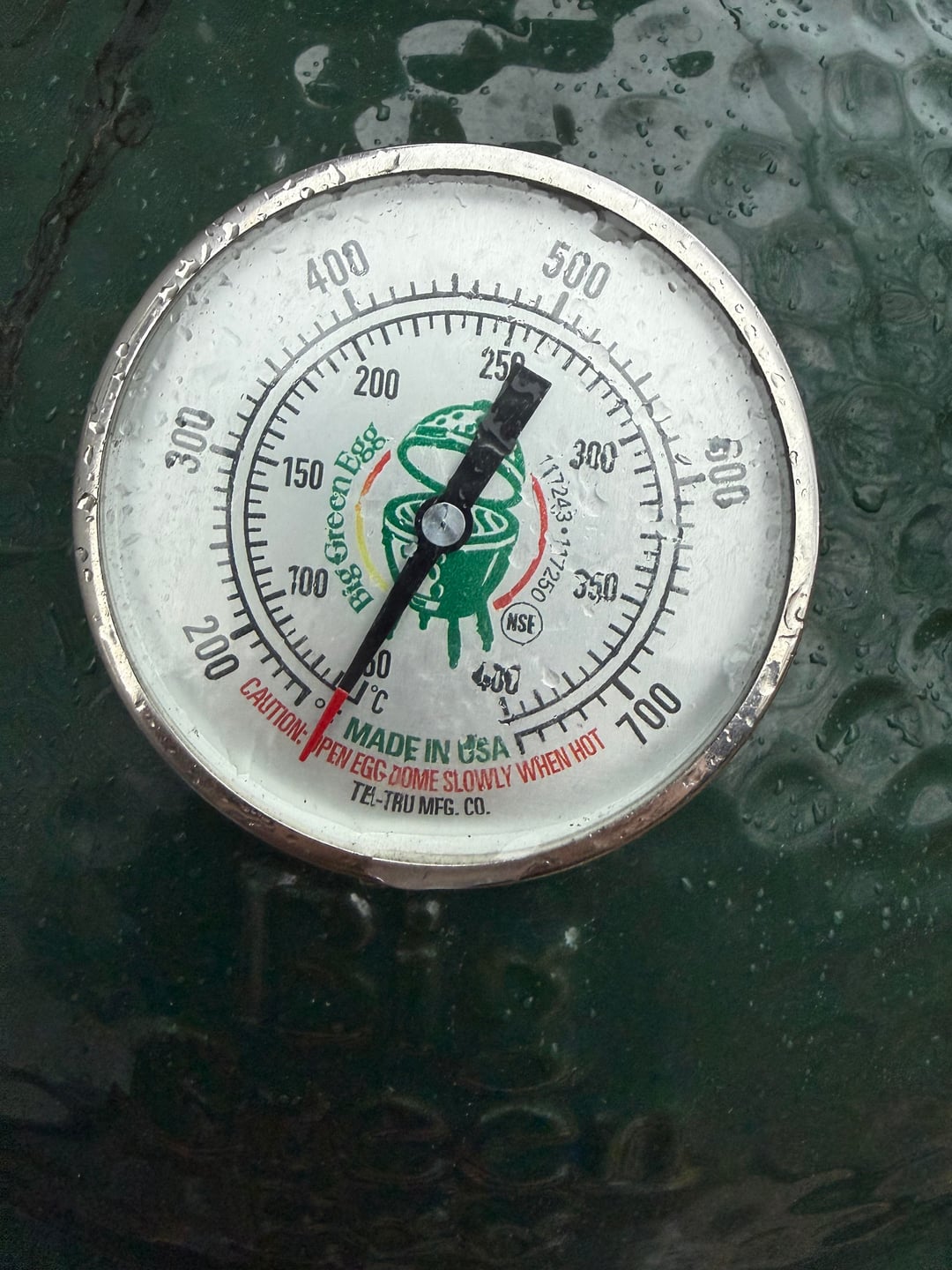 Cooking about 3.5 pounds of jerky today. The egg has held at a nice 120-130° for the last few hours.