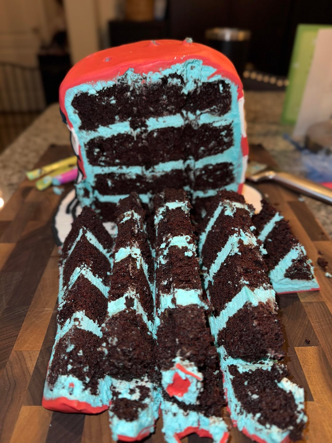 This is the cake I made for my son’s 4th birthday party today. I need a lot more practice but I’m decently proud of it! At least you know what it is haha doesn’t help that my bench scraper is missing sooo I couldn’t perfectly smooth the frosting either. Everything including the cake topper was made by me.