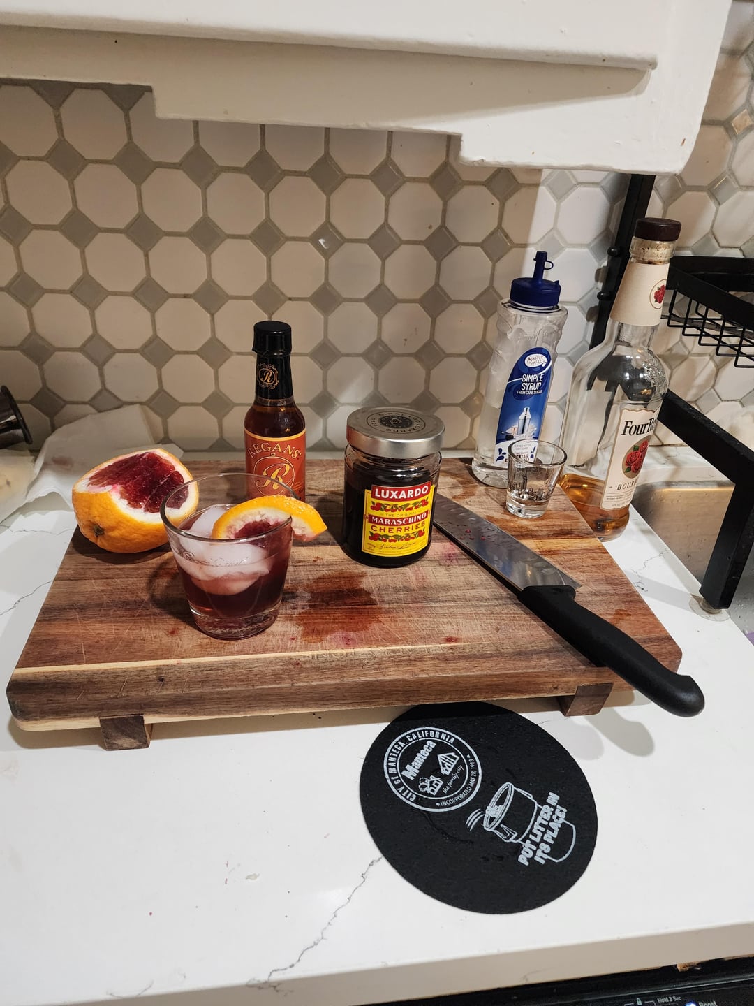 Seasoned with salt and pepper and paired with a blood orange old fashioned.
