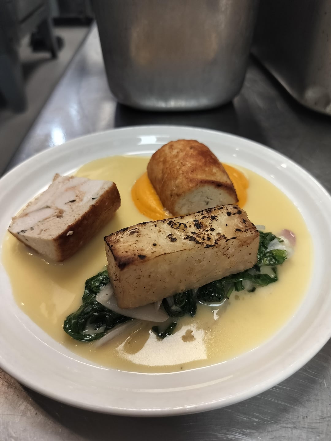 I’m also not sure if buerre blanc would be the best option as a sauce for this. Maybe a pan sauce from the juices cooking. Could still hit a heap of cream in their for a similar colour