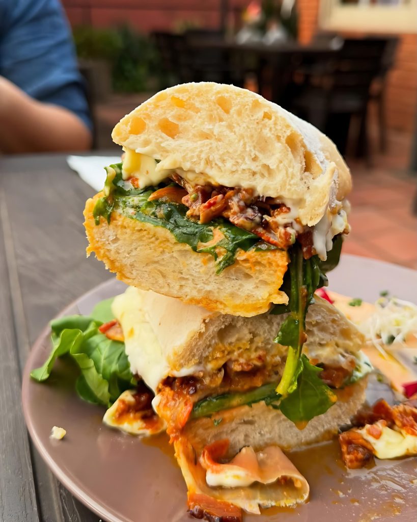 The establishment is not only known for its delicate éclairs and elegant tarts, it also offers a robust savoury menu. Signature dishes include croissants filled with Toscano sausage, creamy chicken curry, or the rich Croque Madame served on house-made brioche. Sandwiches made with ciabatta and artisan breads round out the savoury options, with flavours ranging from caprese to slow-cooked pork shoulder with coffee and spice rub.