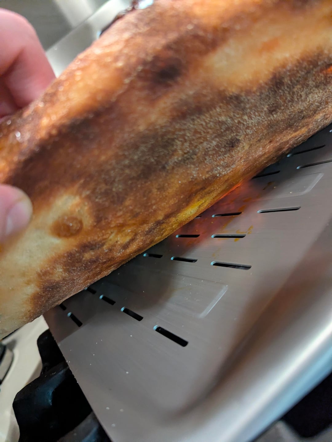 65% hydration, 100% King Arthur bread flour, 2 day cold ferment then balled the night before baking.