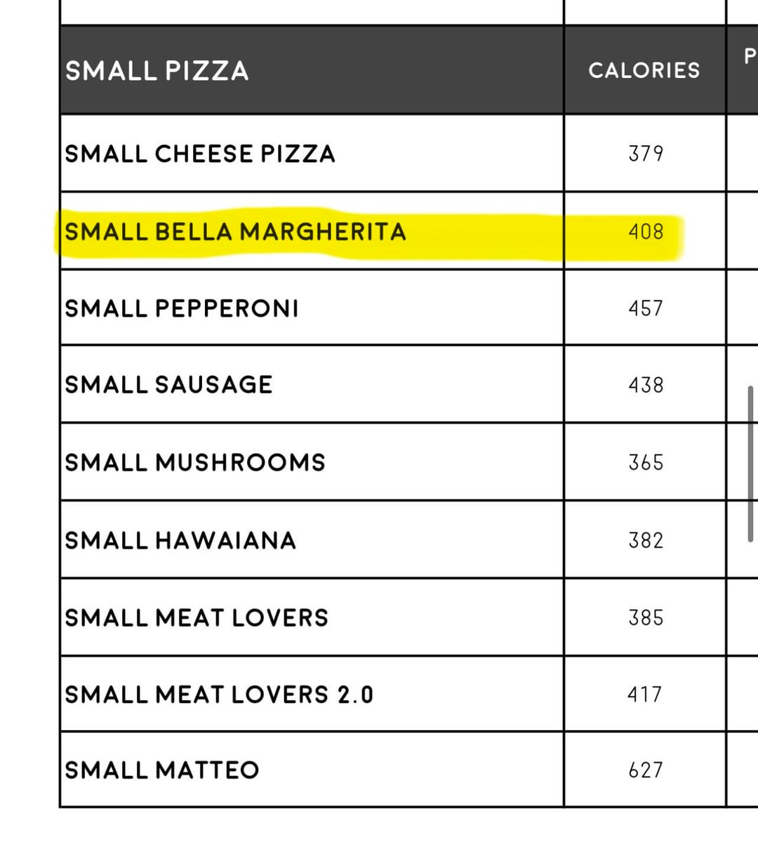 Ya that seems way too low. Is this some special healthy pizza shop? I feel like a 4 inch or 5 inch pizza might be 400, but even that’s questionable