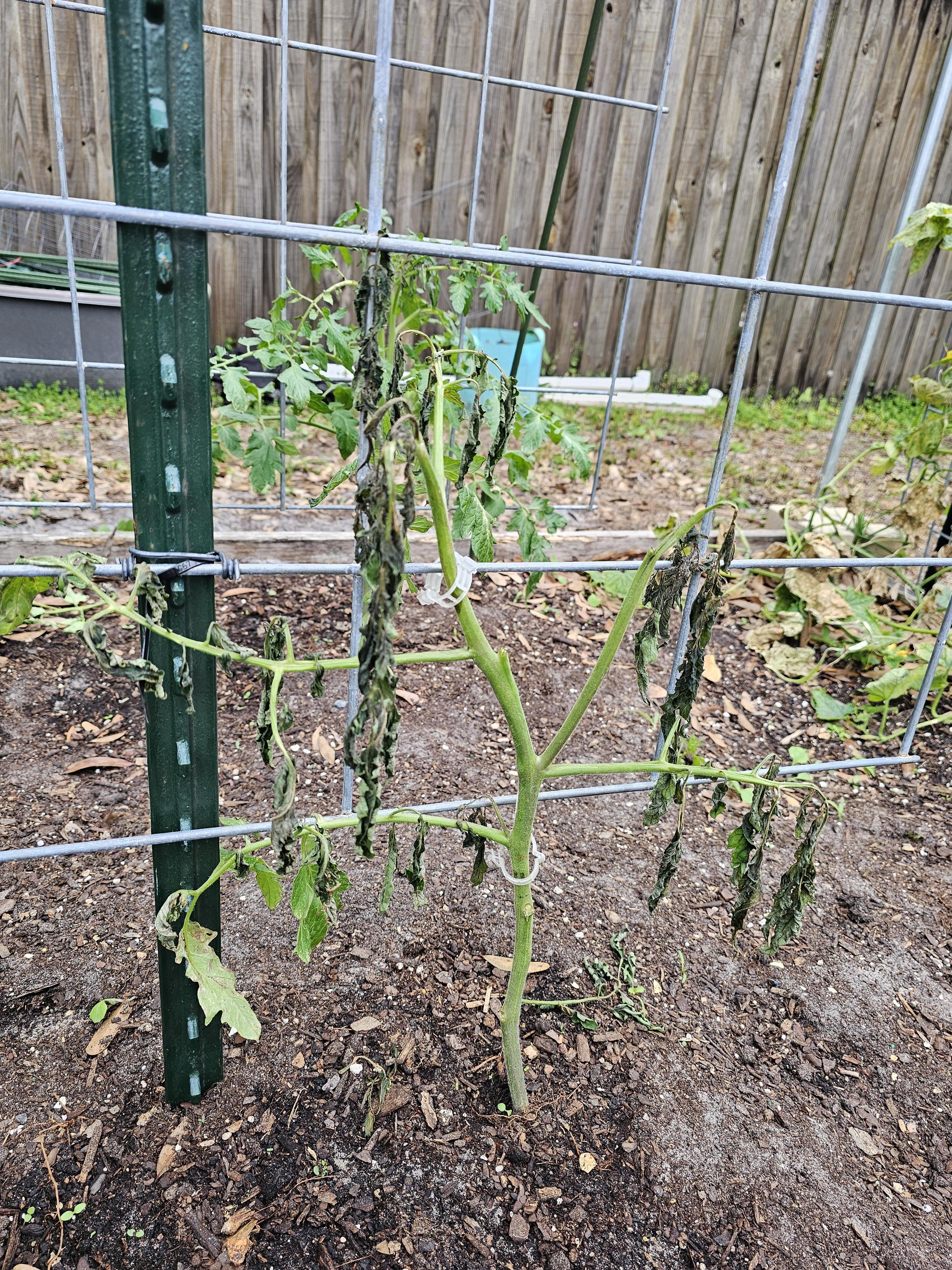 Assuming that’s a pic of a tomato in Florida that got hit by one frost and won’t be hit with frost again I’d say you’re fine. The roots and stem are all still intact. Just give the plant time and a little pruning.