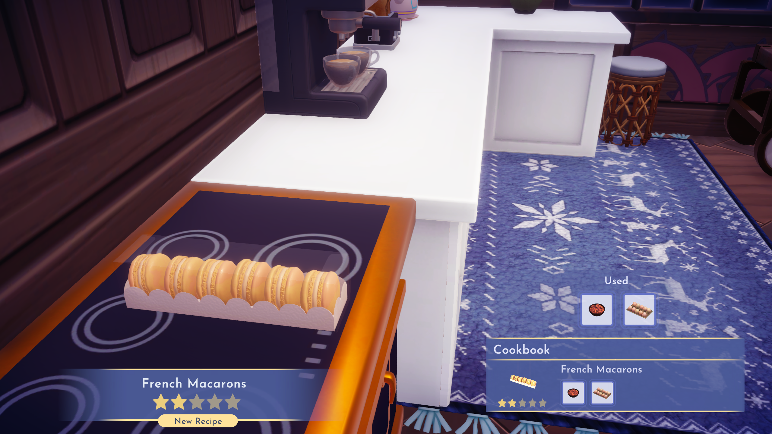 French Macarons is a two-star Dessert exclusive to the Disney Dreamlight Valley: A Rift in Time expansion. This DDLV guide provides the ingredients needed to cook the French Macarons recipe and how to find all the required ingredients.