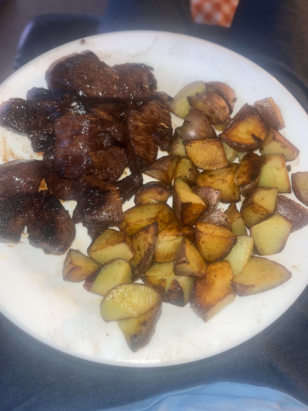 calorie estimate? venison steak/red potatoesby Lazy_Peak_1931 1 Comment DiscombobulatedBus81 2 weeks ago hey lazy ! ✌🏽venison is pretty lean so this will be a lowwwww fat meal here…venison ([USDA reference](https://fdc.nal.usda.gov/food-details/174431/nutrients); ≈170g raw) ≈215red potatoes (average; ≈200g raw) ≈160olive oil (for potatoes & possibly steak; ≈10g) ≈75-100running estimate: ≈***450-475 calories !!*** 🙂