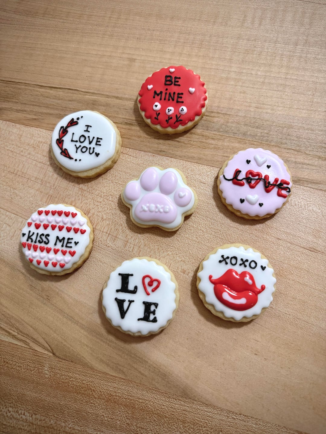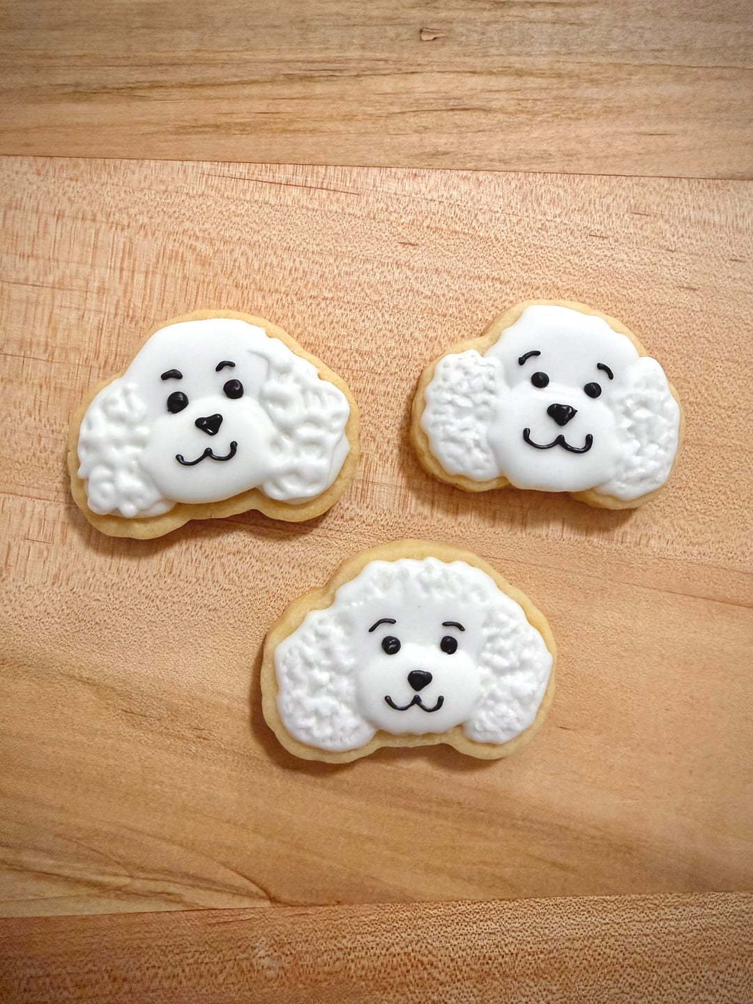 I took 2 classes a year apart and fell in love. This is my first time making the cookies and the icing from scratch, figuring out what to design on them and not having a step by step class! Pretty proud of myself even if theyโre simple ๐ the lip one is still wet because I couldnโt wait to share! I made the poodles to practice some textures. I love experimenting!