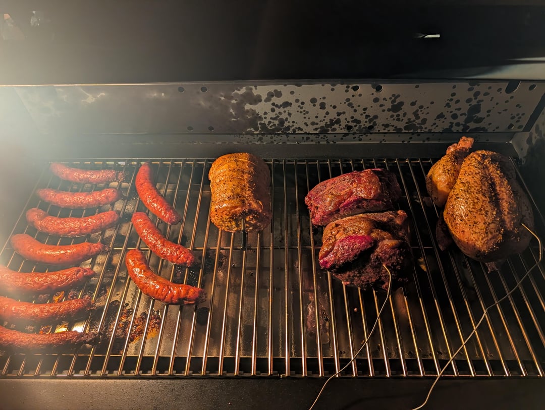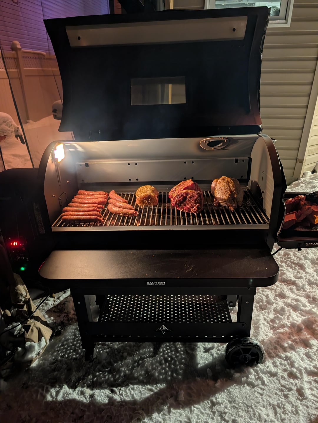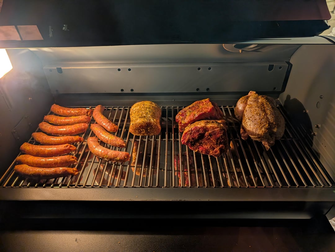 got a Peak Prime 2.0 a couple weeks ago and finally seasoned it and got in my first session. this thing is huge! Pork loin, sausages, whole chicken and a couple small top sirloins. cooked them all at once. I'm very happy with the way it all came out.