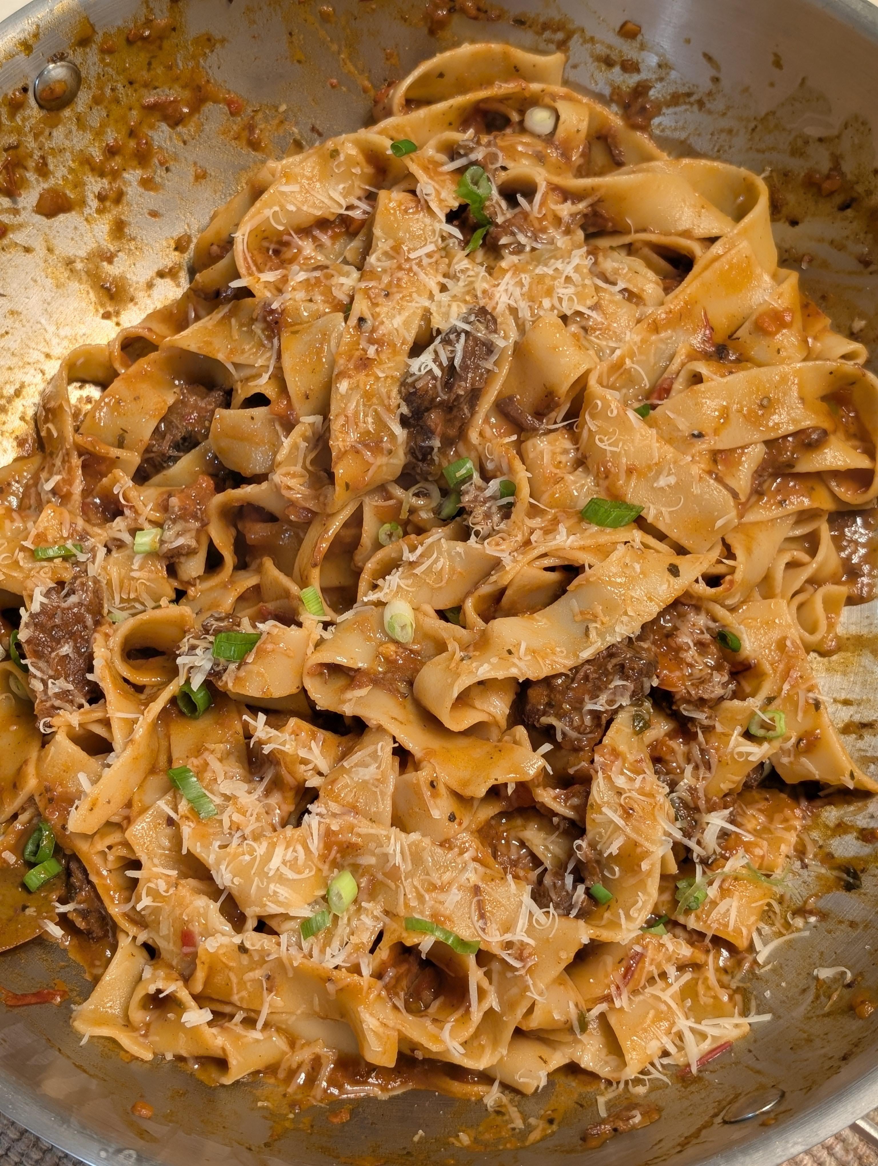 [Homemade] Ragu with chuck roast. Didn’t have parsley, just used some scallionsby octlol 9 Comments Prestigious-Park9329 3 days ago Yum! 😋 wikibear30 3 days ago That’s a damn good looking ragu. scw1224 3 days ago I’d eat that. All of it. LovableeGirll2 3 days ago Chuck roast always gives it that melt-in-your-mouth depth. aflacker03 3 days ago Unless that’s more of a spaghetti sauce that looks more like Stroganoff. Looks good though! Passionate-Mariaa 3 days ago Scallions > parsley anyway. Jumpy-Violinist2858 3 days ago Excellent Recipe! DownwardNova 3 days ago look so good! delicious! No_Seaworthiness1679 3 days ago Kudos for using chuck roast! I bet that made it even better.