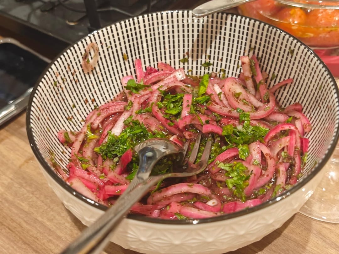 Quick pickle onion with red wine vinegar, salt and sumac