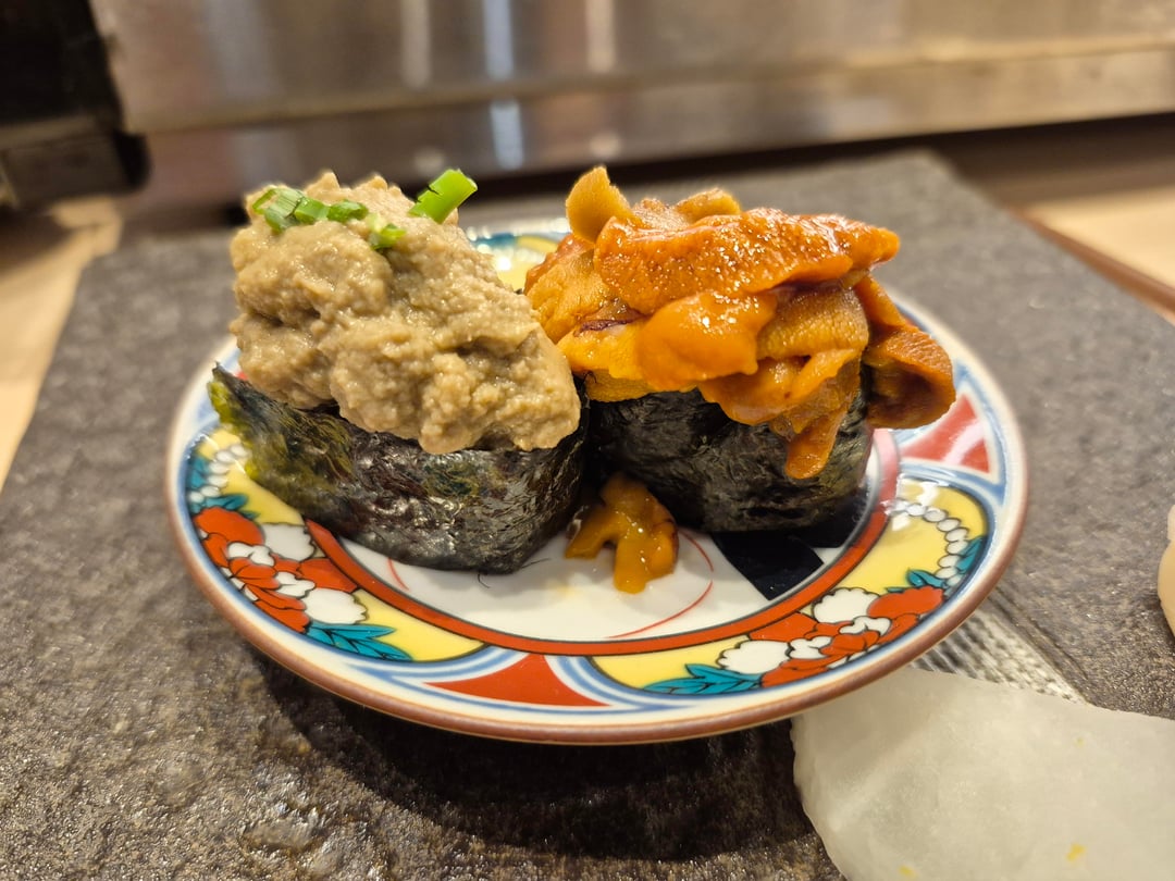 1. What I like about this is that the chef serves it at the counter like omakase. One piece at a time, or two max, if it’s maki or gunkan. As opposed to making up a big plate and giving you 8 or 10 pieces at once.
