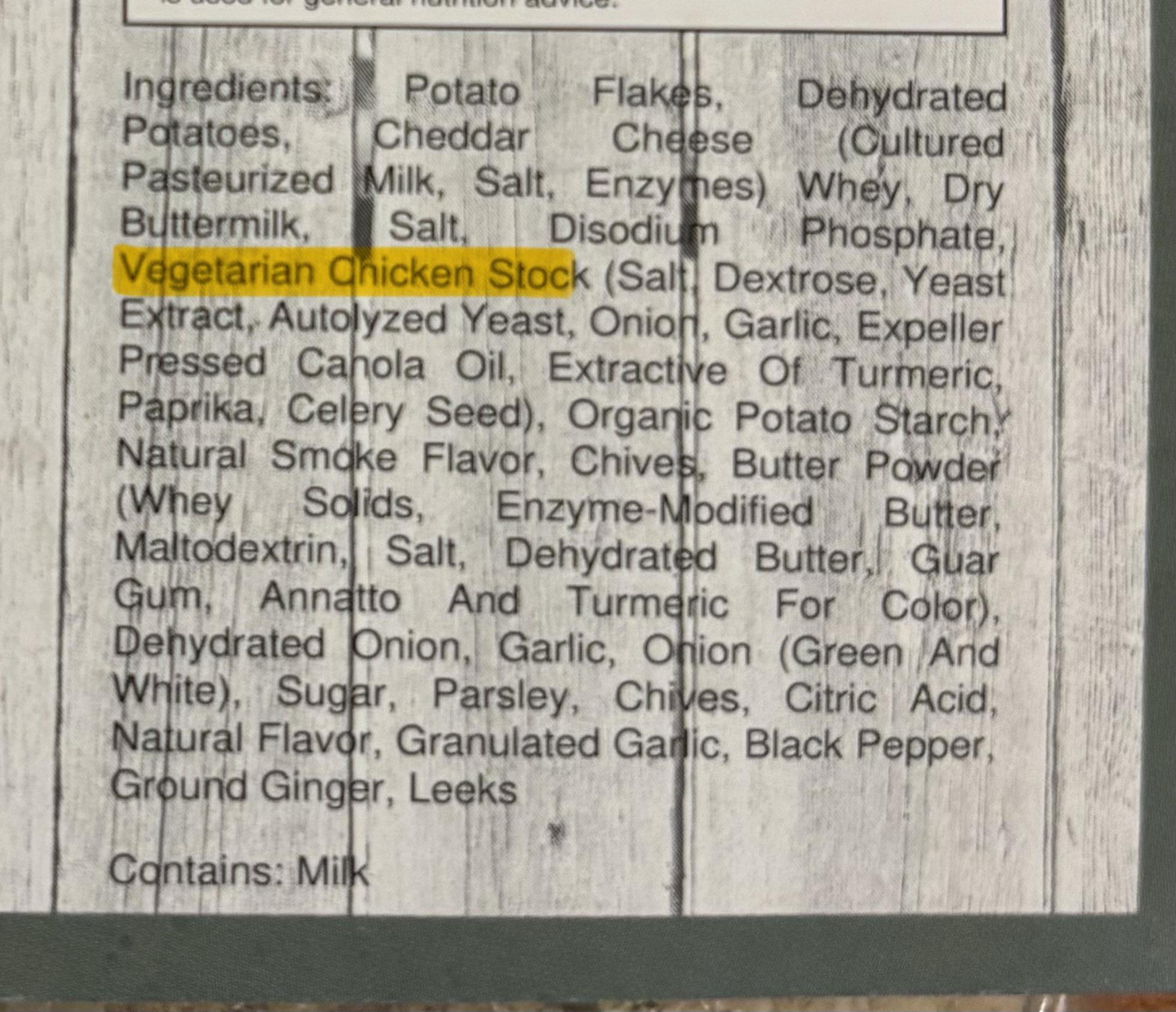 This is my first time hearing of such an ingredient. I would guess it’s supposed to mimic a chicken flavor? The package is a potato soup mix.