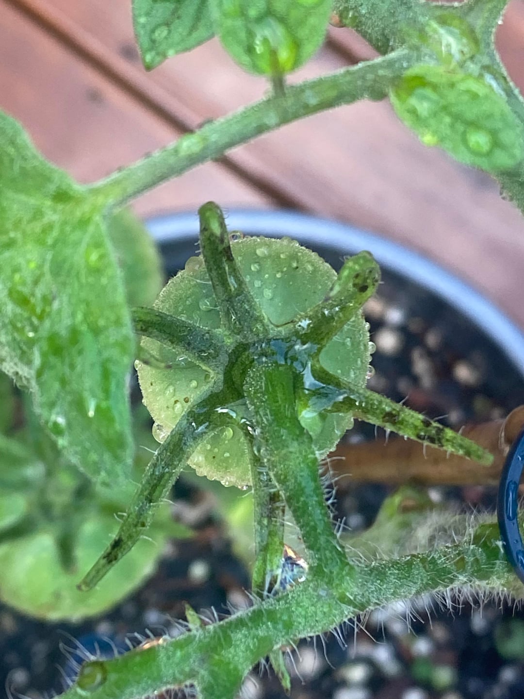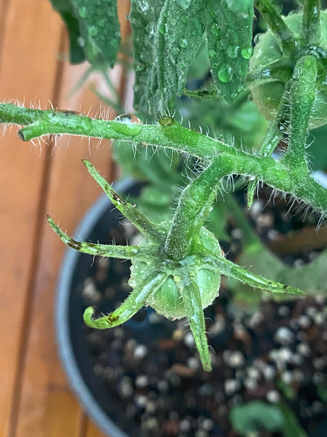 Could someone help identify this black spots on tomato calyx. It's not insects but it looks like a bruise and the fruit doesn't seem to grow that much after appearing. What's the solution for this?