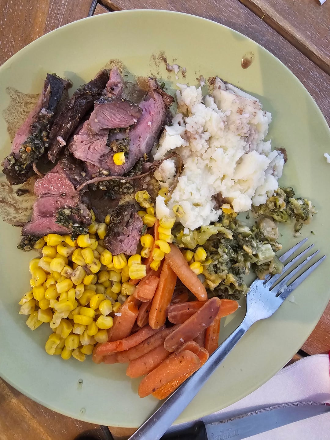 I whipped up quick pan sauce with the juice from the bag, red wine and a teaspoon of the spice paste.