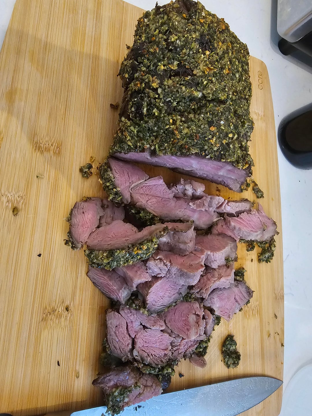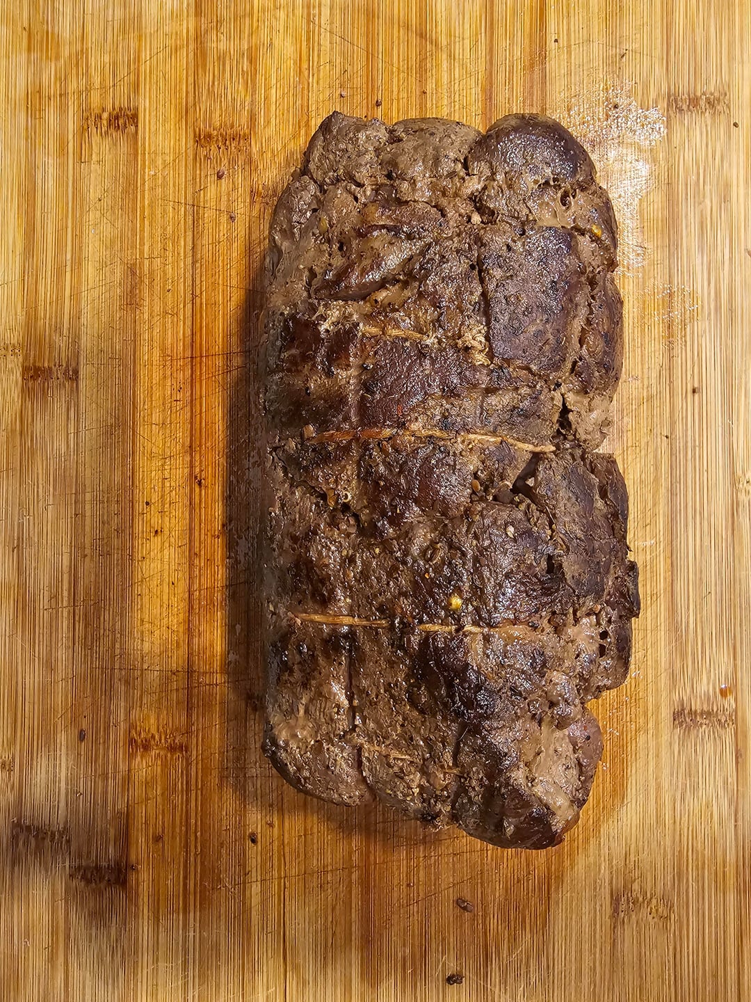 I left it in the bath for 2 hours to cool off. Coated the roast with olive oil and seared in a pan with coconut oil.