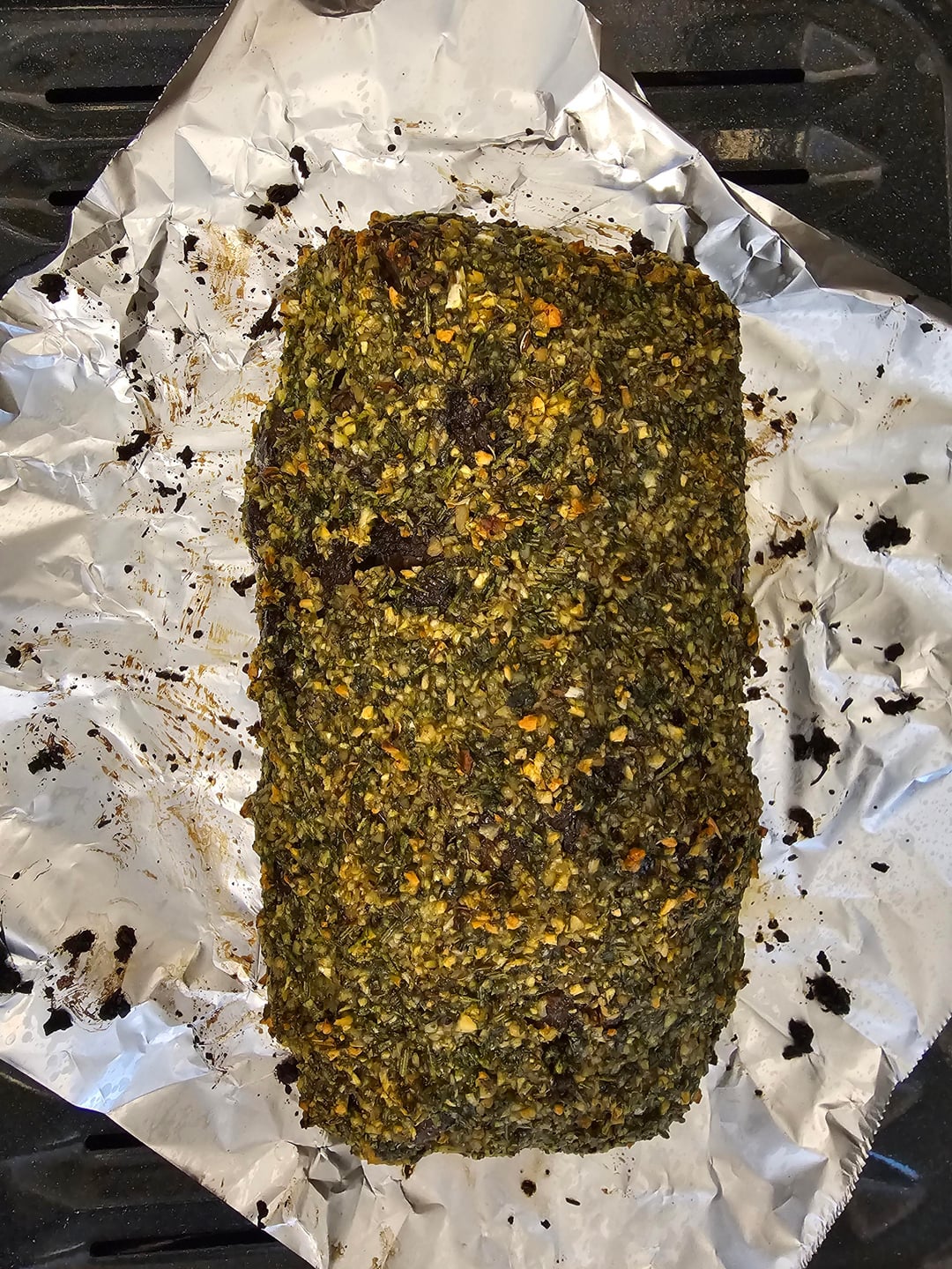 Next i patted on a thick layer of the spice paste all over. 475 for 10 mins in the oven, convection on.