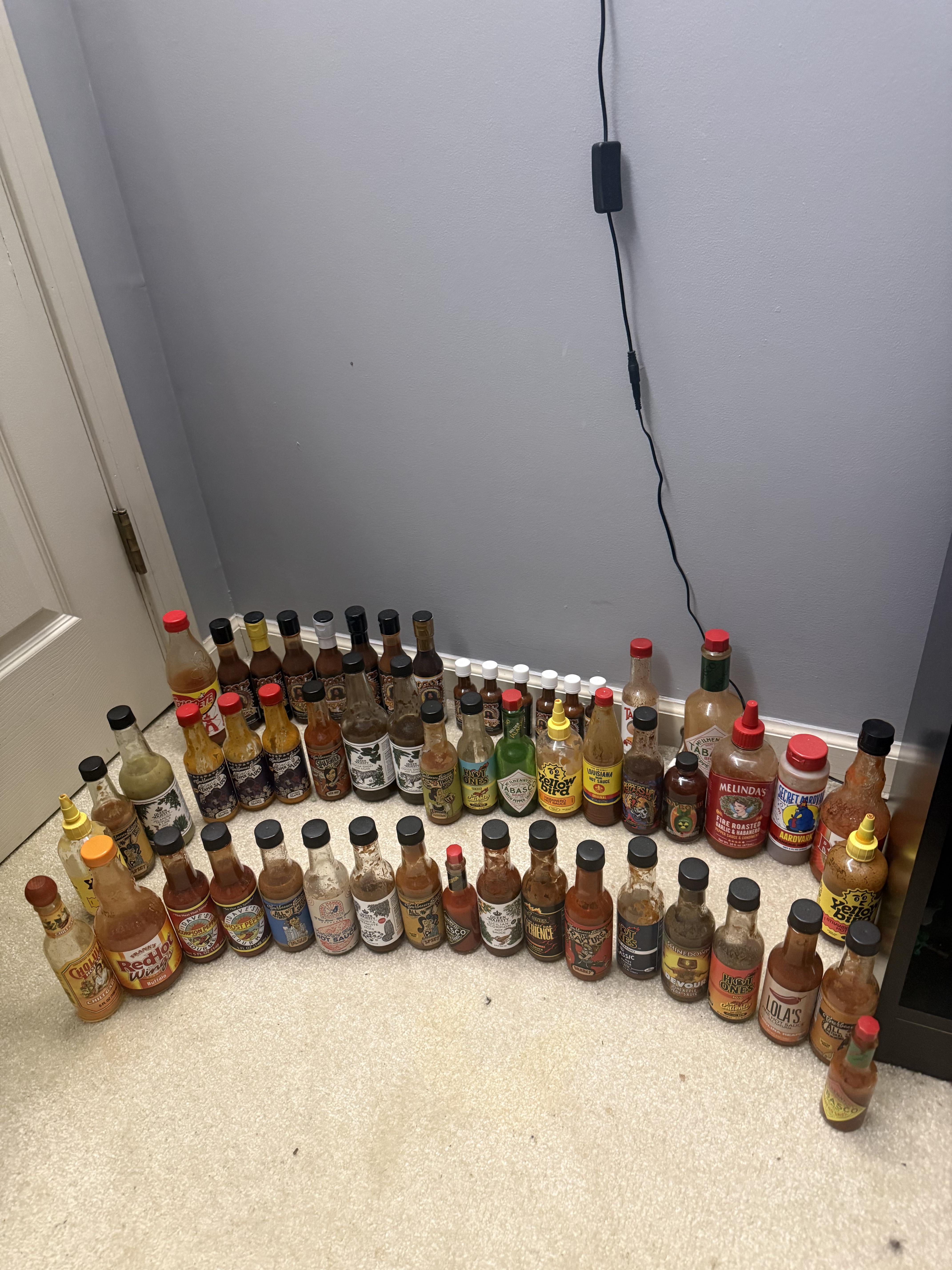 Every sauce I currently haveby Spiriual-Bit-4387 9 Comments fairloughair 3 weeks ago  Voiceless-Echo 3 weeks ago Why do you have multiple of the same open at once ? aquinoks 3 weeks ago Even with high vinegar or real fermentation they do go ranic and the flavor changes. Bone_Breaker0 3 weeks ago Why you keep sauce on floor? The_Jitterati 3 weeks ago *(hears clinking in the middle of night, turns on light to see this)* uh oh A1Aaron18 3 weeks ago Is that one good Abject_Reading5004 3 weeks ago Peppers up ! Love that stuff when I make k bbq short ribs at home. Fuzzy_Welcome8348 3 weeks ago Nice line up! elderleaf32 3 weeks ago No Marie sharps?!