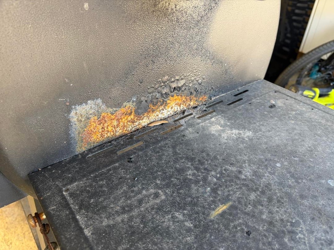 I had a pit Boss go nuclear for about 10 mins before I got to it. Flames looked like the post earlier today. I put the smoker aside out of my frustration for trying to cook another brisket before I deep cleaned it and a few months went by…. Things started rusting over where the paint burned off. Would love to hear from you all on my plan to rebuild…. Wire brushed all the rust and loose paint away.