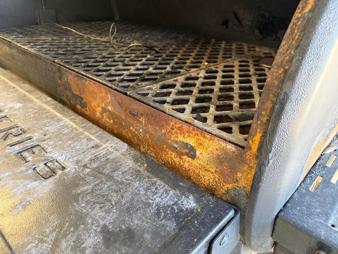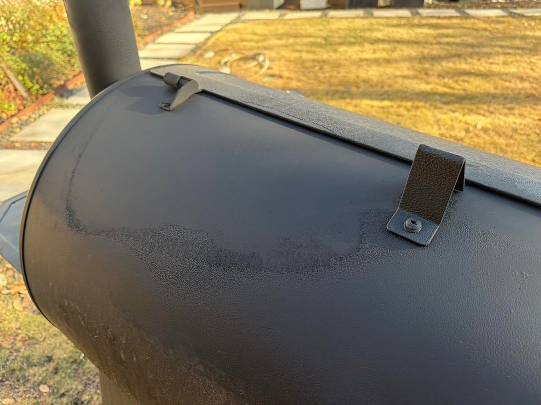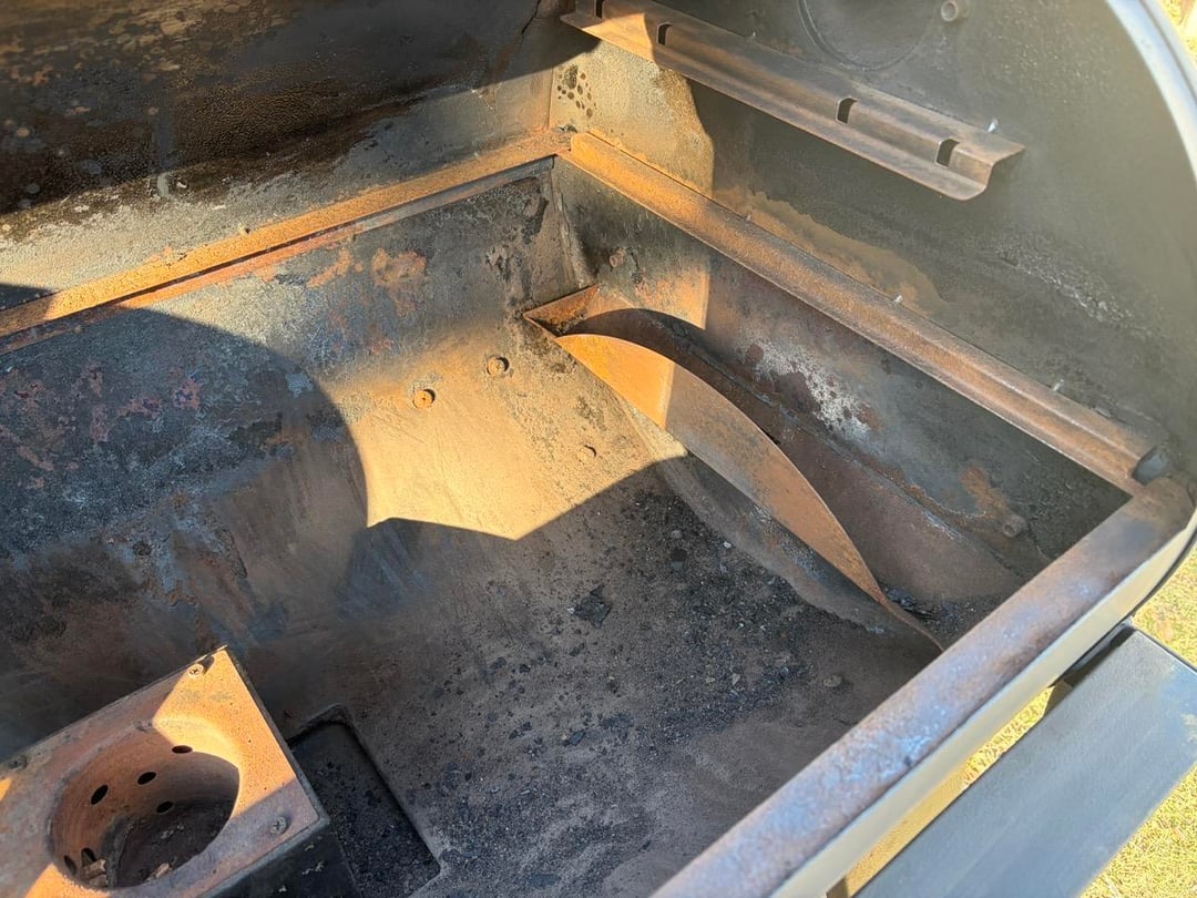 • Wire brushed all the rust and loose paint away including all the loose powder coat INSIDE the smoker.