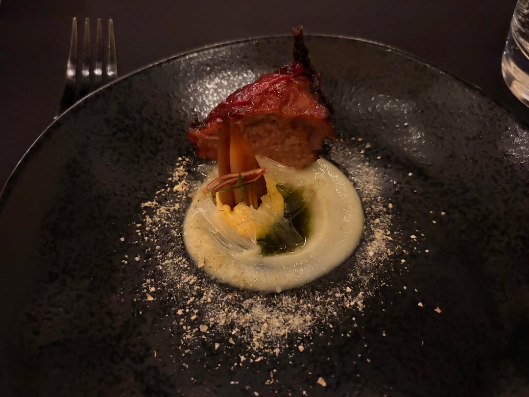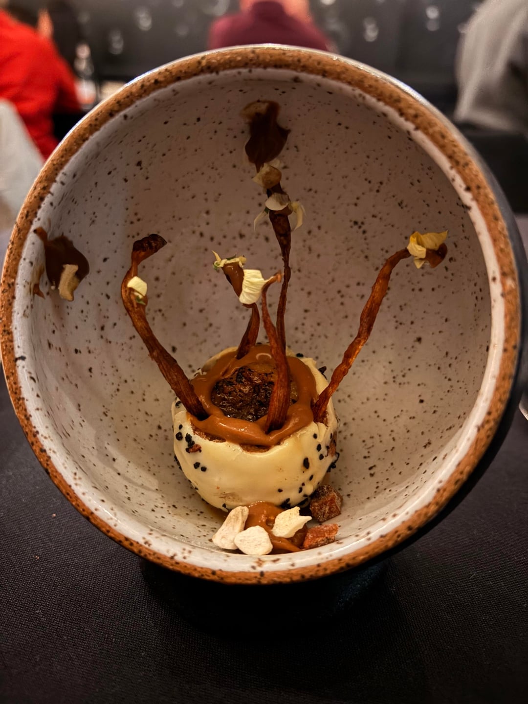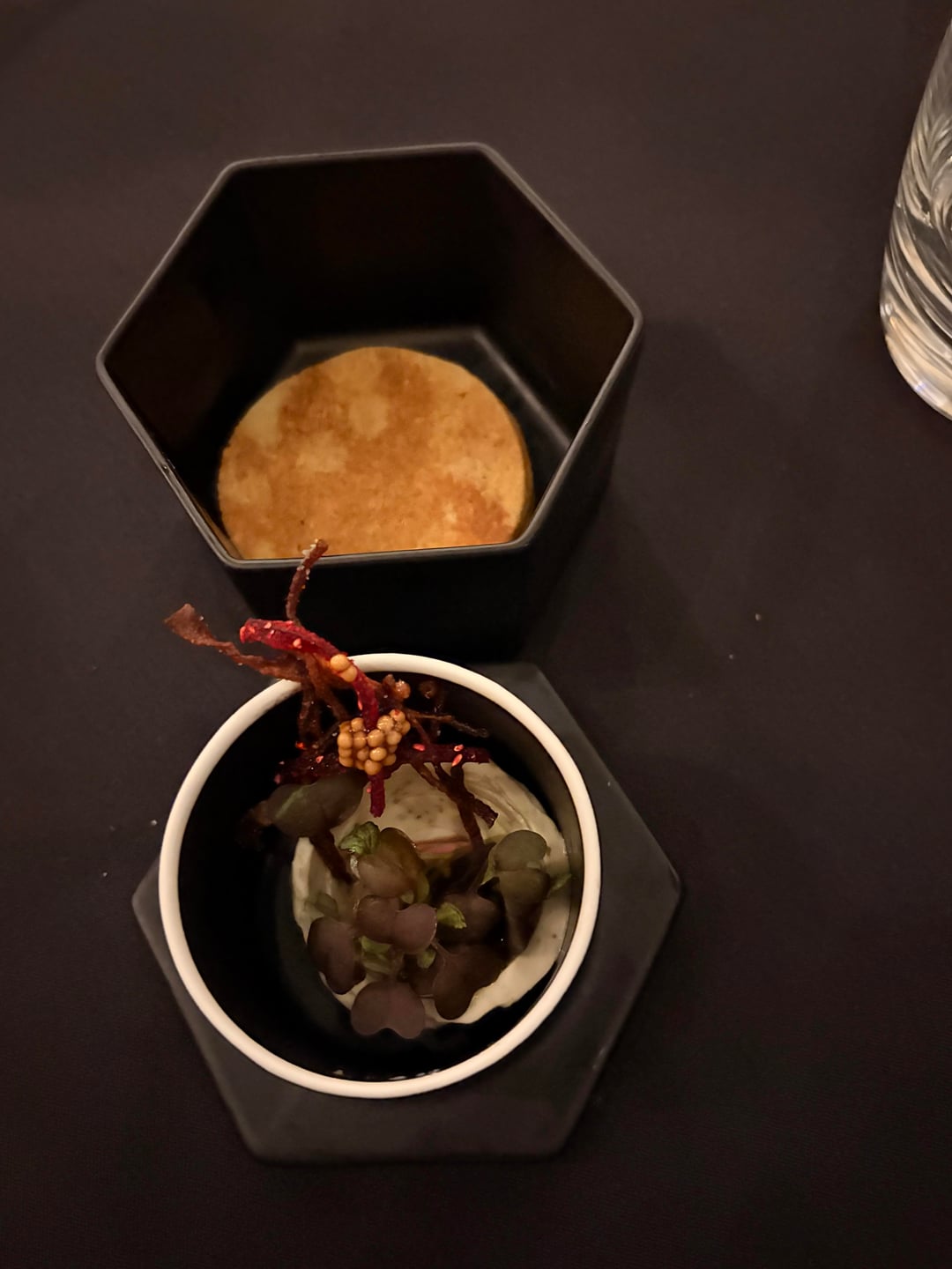 My favourite bites were definitely 1) ravioli shot which leans heavily on truffle 2) trout with lychee 3)rutabaga crepes with butter and caviar 4)cheese course with fenugreek, canale, and chocolate and mushrooms. Least favourite bites were 1) bubblegum taffy with plum soda 2) cornbread and 3) wagyu bc of inconsistent cook and some were definitely too cooked.