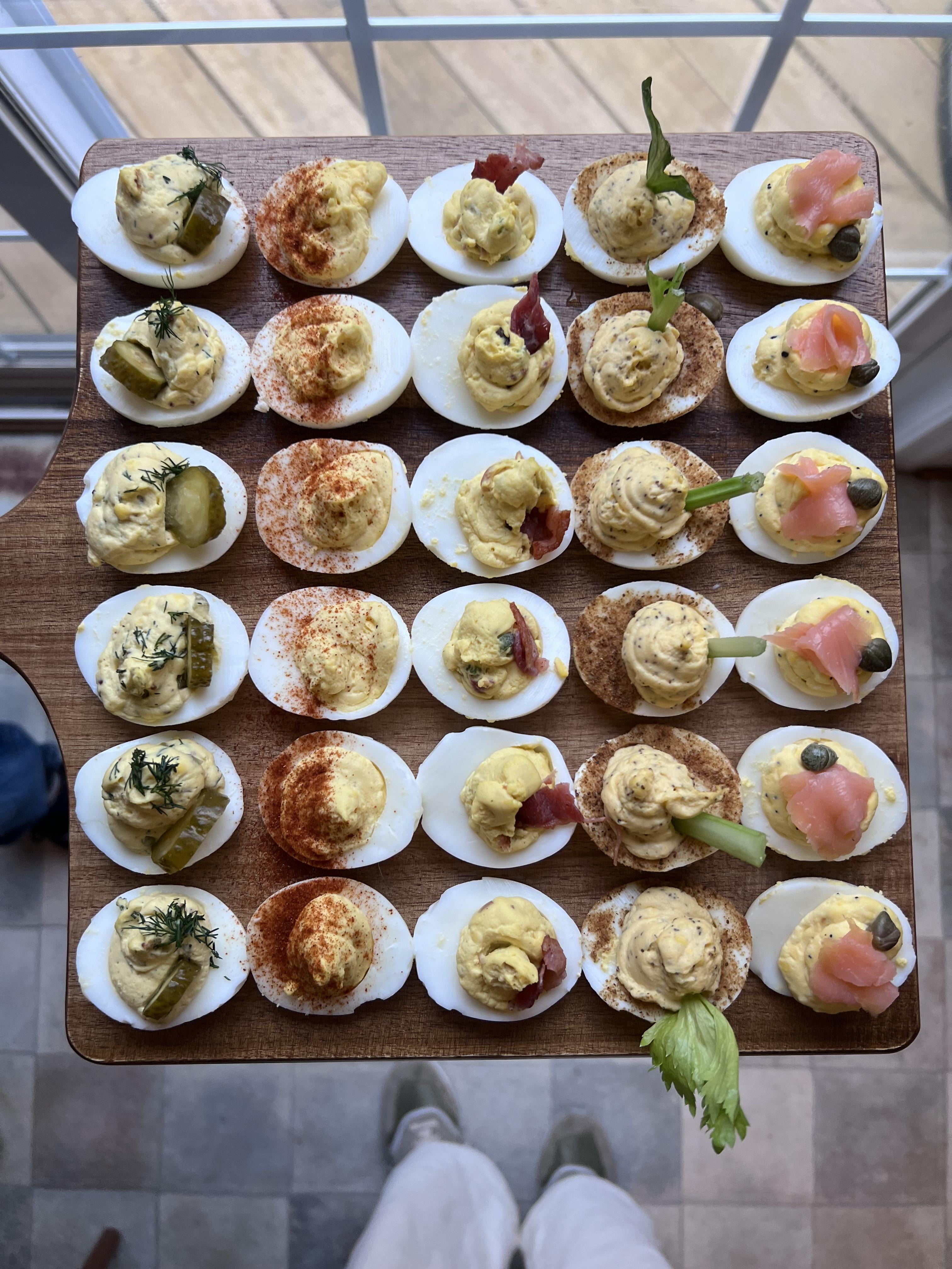 I’m picky and have seen so many things including variously dressed-up devilled eggs that I would not want to try, but every variety you made looks and sounds wonderful! Great job, OP, this is truly a high-end spread.