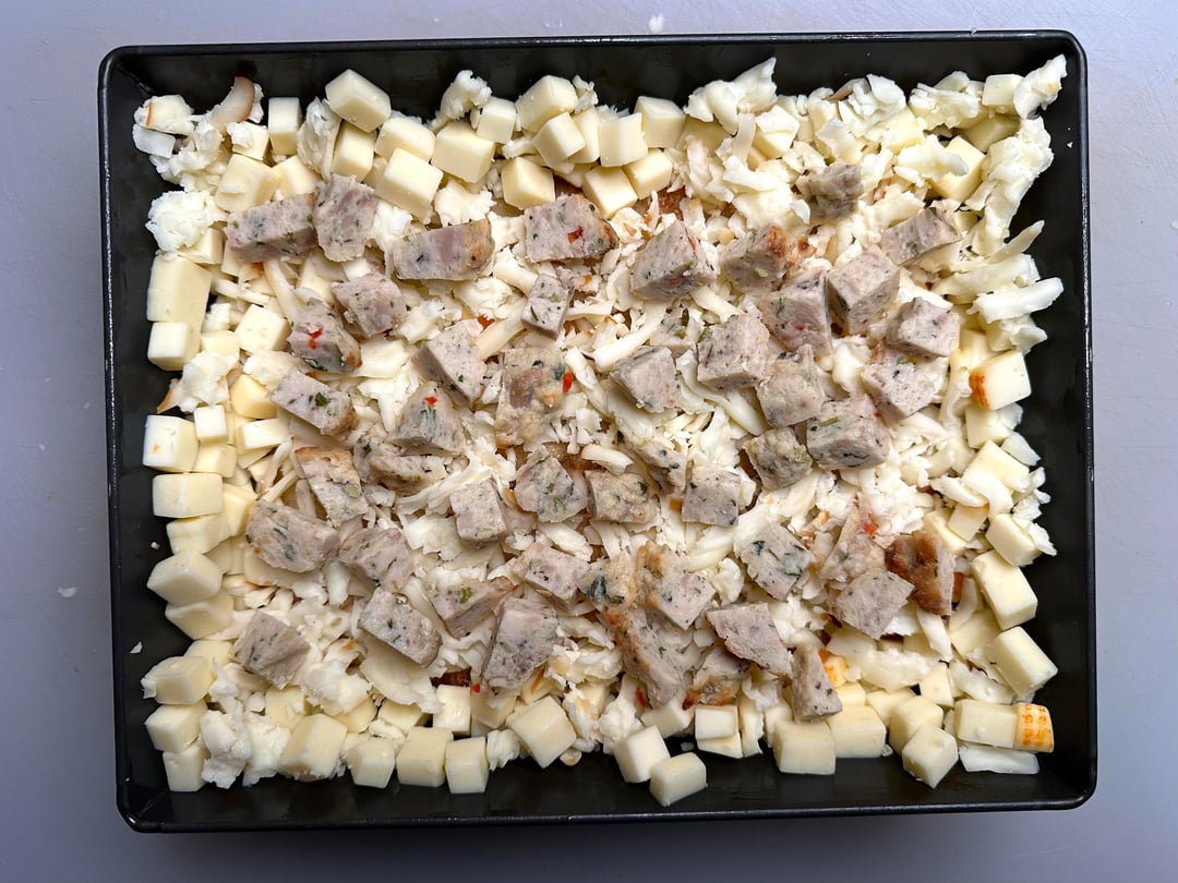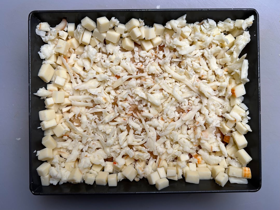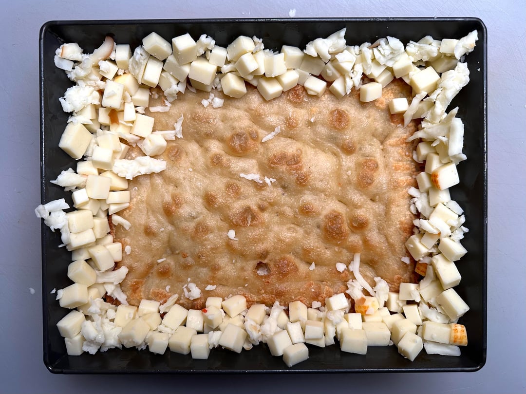 In picture 13, is that the rind of the cheese? Is that the Muenster or Monterey Jack? What is your “usual mix” of cheese? Do you have cook times/temps for your bakes? I’m highly impressed by that frico and I might try some of what you reply to change mine up!