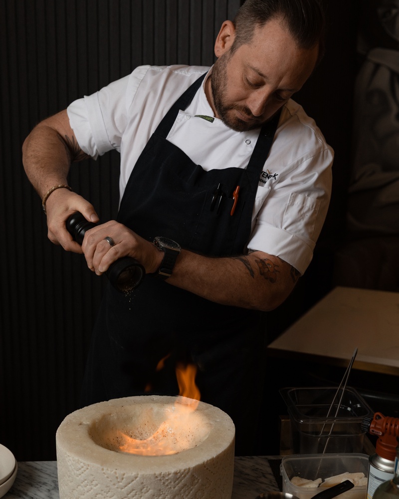 “By finishing the pasta in the cheese wheel, we’re allowing the pecorino to melt naturally and coat the linguini without overpowering it,” Tilly said.