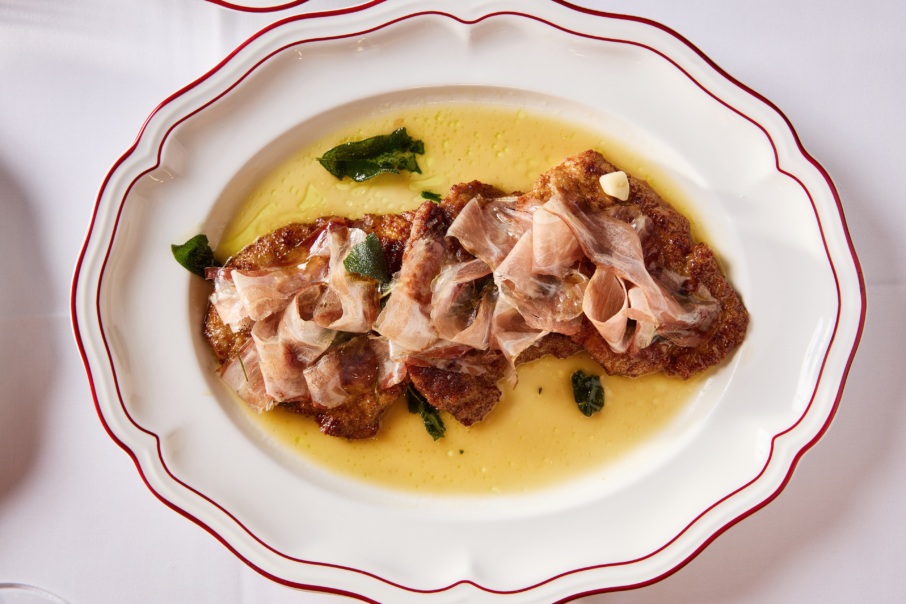 The Carbone team has cooked more veal parms than they can count, so for Carbone Vino, they wanted to explore an entirely new veal preparation: the saltimbocca. “It’s familiar but refined, a version we have been wanting to eat for years. Carbone Vino finally gave us the excuse,” Carbone says.