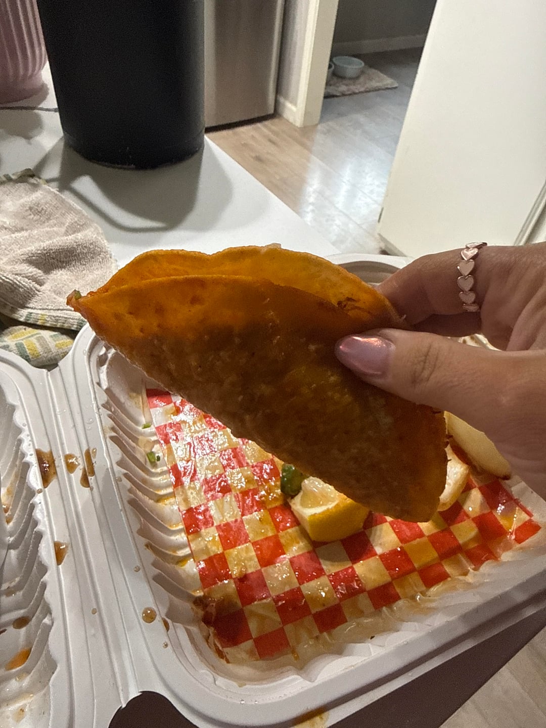 Calories in 2 of these quesabirria tacos from a taco truck. ChatGPT says 500 each and all the loseit entries say 250ish each. That’s such a big difference😭