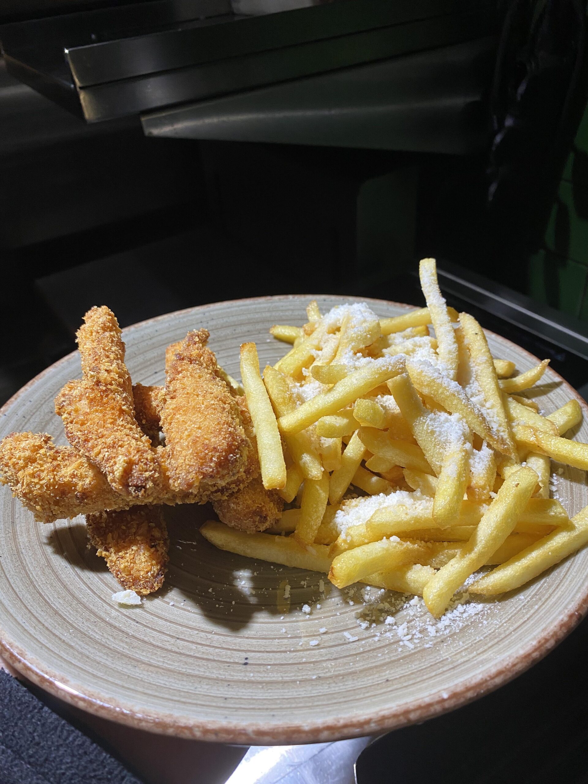 I mean you’re right they are potatoes but they definitely just look like frozen french fries. This is just tenders and chips in the UK but the tenders look great and I approve of the amount of parmesan.