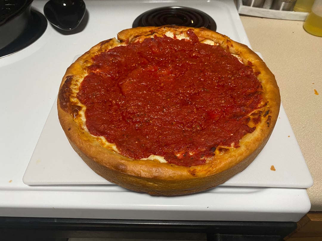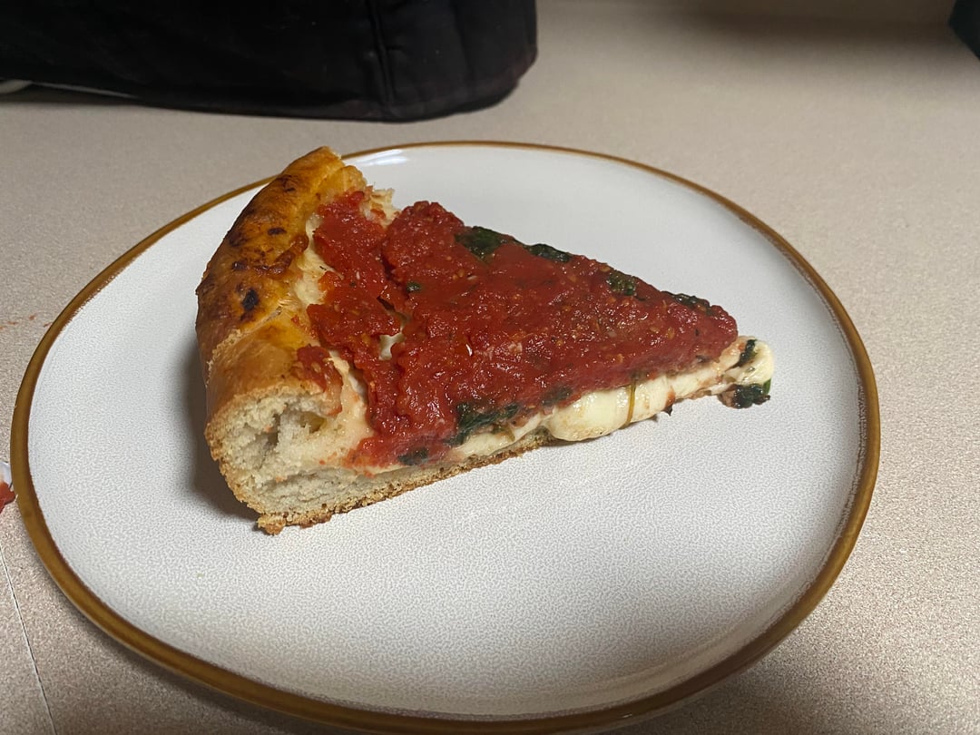 7. Chicago native here. This is beautiful. But where’s your fork at? You’re gonna regret trying to eat this like a normal slice of pizza. Also, what’s your crust recipe?