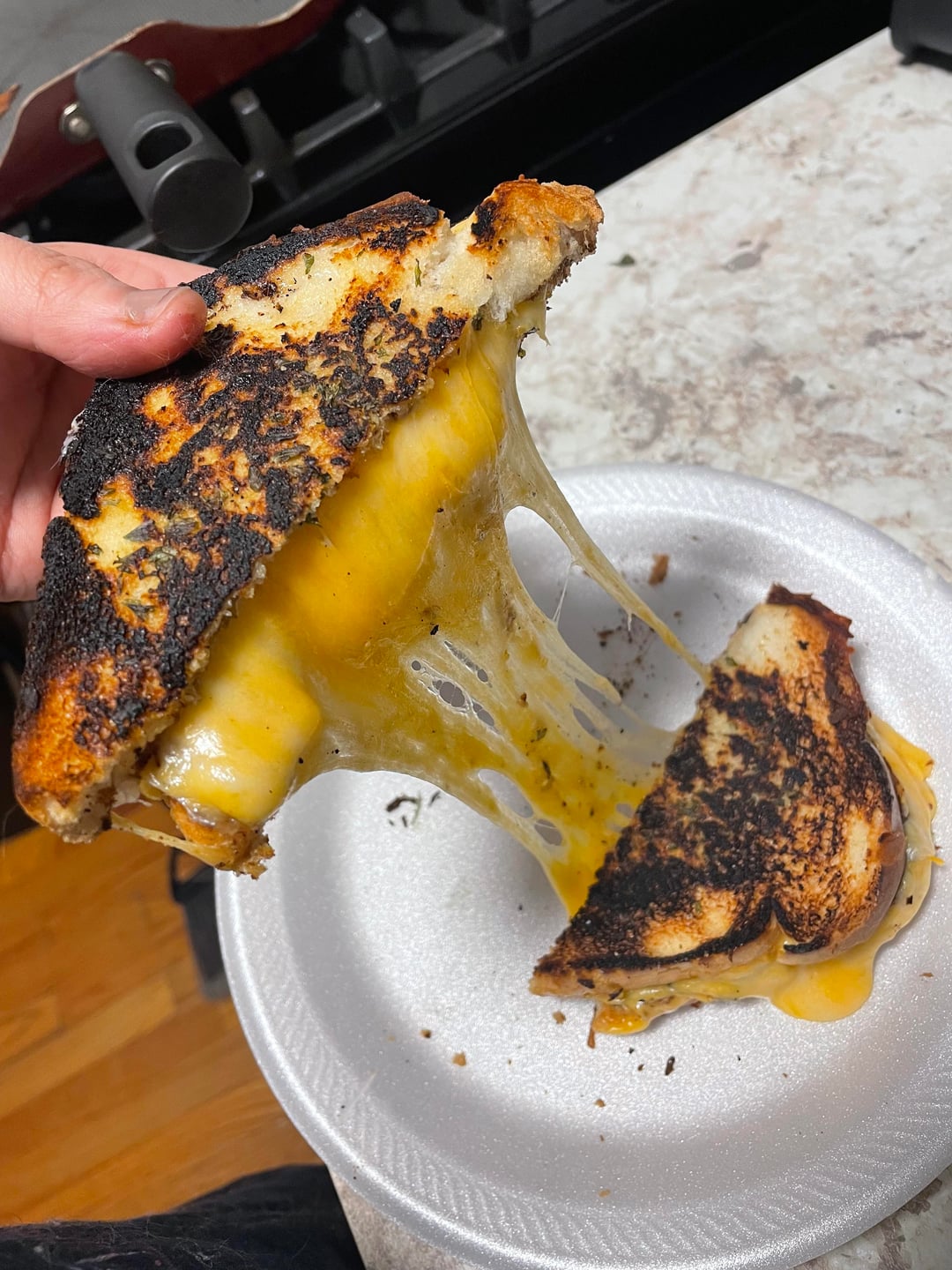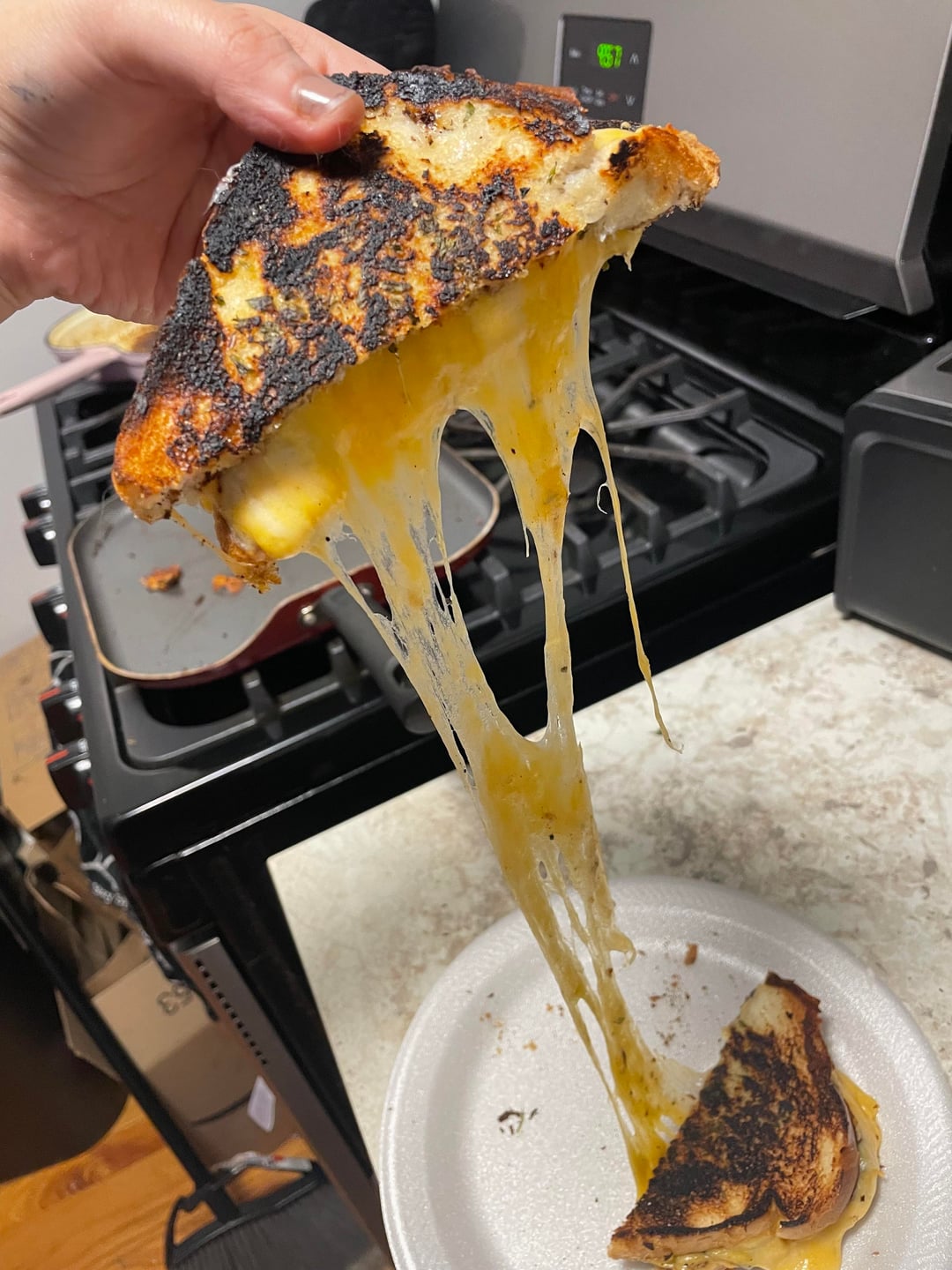This is a happy accident, I would tear that grilled cheese up!