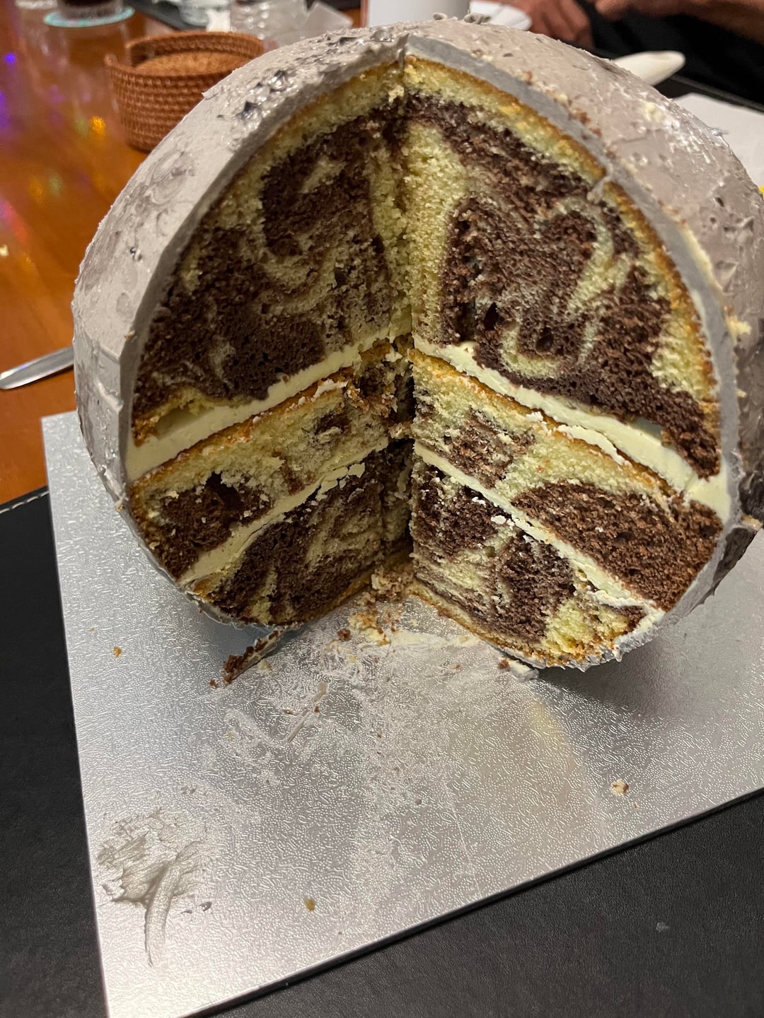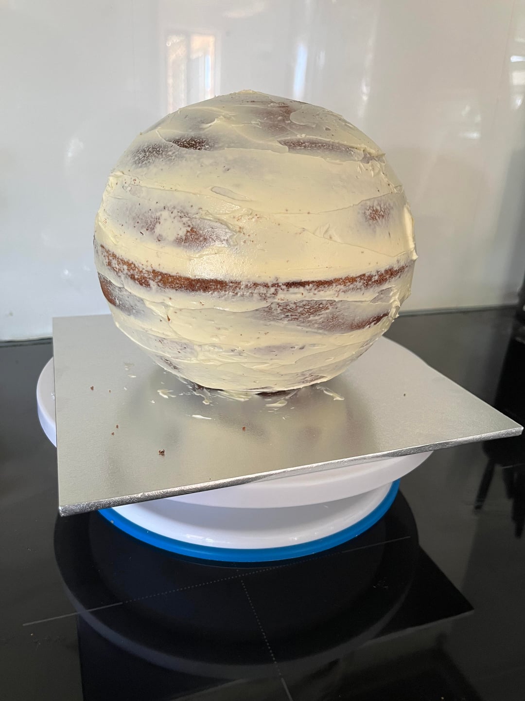 Curious cause I’ve never done a spherical cake…is it sturdier to do the 2 layer base instead of another single layer like the top? I’m thinking yes but this is clearly past my skill level.