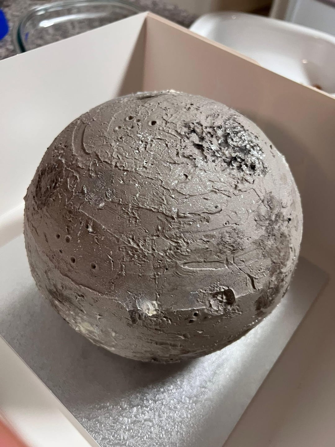 This cake was for my 12 year old brother, who requested a replica of Mercury (the planet) for his birthday.