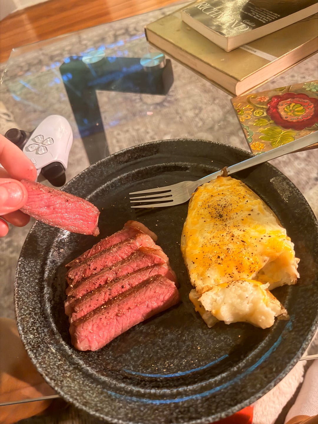 Almost perfect. You need to sear that fat cap. It looks like there was not heat applied to the fat. You want to crisp it up. It also gets some rendered fat into the pan and gives the rest of the steak some extra flavor. And you get a nice pre dessert of any trimmed fat.