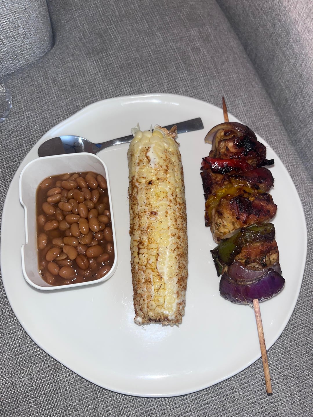 FlashbacksThatHurt 1 week ago 270ish-330ish. Unless those are baked beans. The stick is just roasted veggies? Is there butter and oil ?