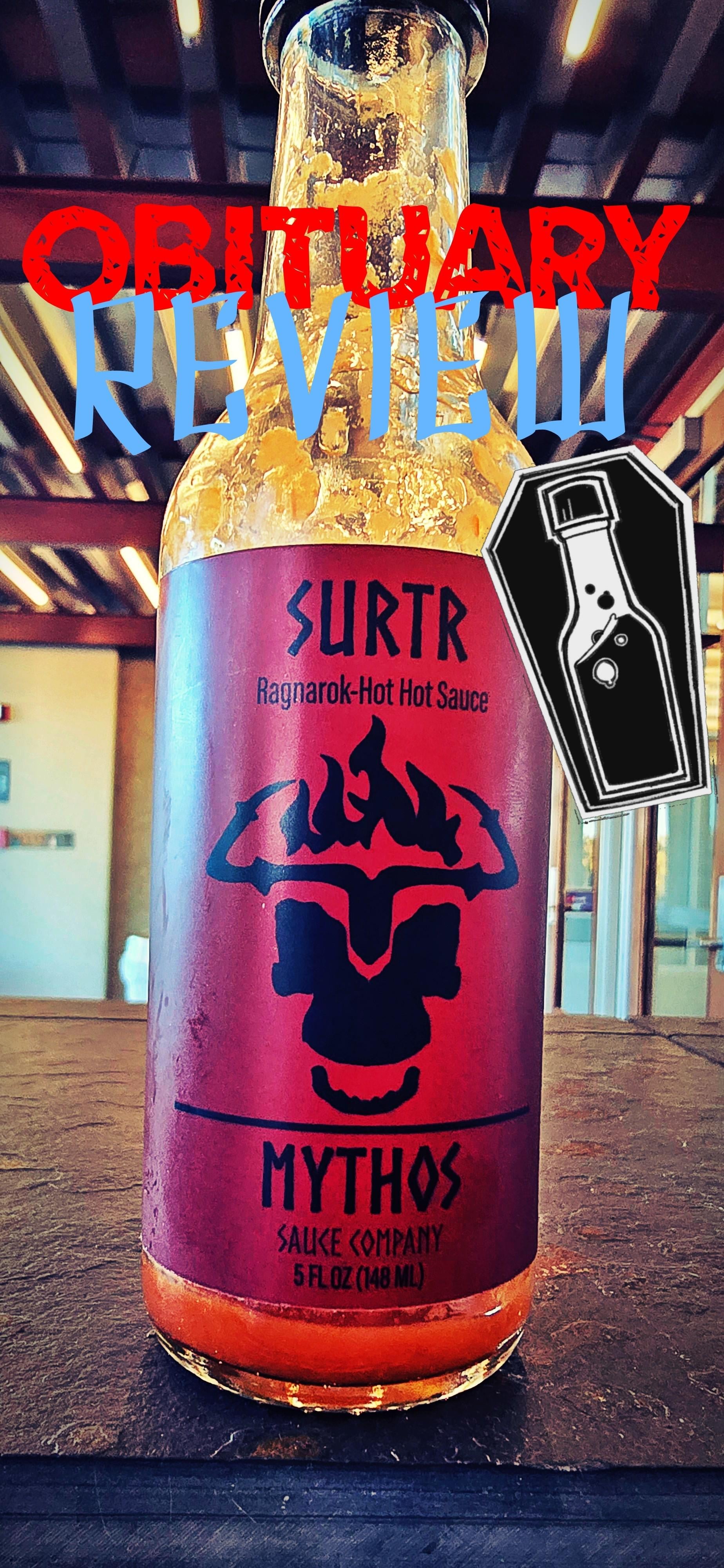 I first met this sauce at my local farmer’s market. Unfortunately for fans of this brand, they closed their doors in late 2025. For a few years now, I have been screaming from the rooftops about how much I love these sauces. Maybe it was some bias because they’re local to Kansas City, or maybe they cracked the code of hot sauces. Alas, there are still a handful of varieties from Mythos that I have yet to review on here. Mixed emotions will consume me as I put them through the cycle. A bittersweet type of sendoff… and I am proud to be a part of it! I’m happy it happened, and sad to see them go. Sure, it’s a simple thing, but I genuinely love waking up early on Saturdays and going to the farmer’s market. The cool summer mornings, the smell of cinnamon rolls, fresh produce, and grilled meats. Meeting new people and witnessing firsthand the quality of freshly picked vegetables. Here is where I discovered Mythos hot sauce; a brand that would quickly become my favorite. While you all witness my reviews on this page, what you don’t see is me using Mythos at home as my daily drivers. Thor will always have a special place in my heart, but this review is about Surtr, so let’s get into it!